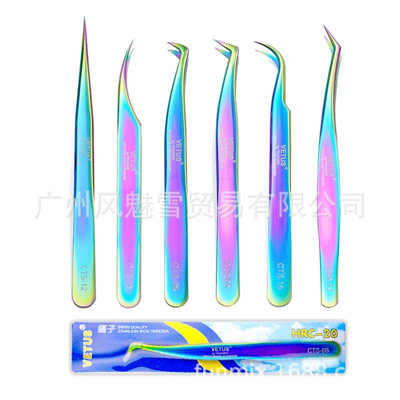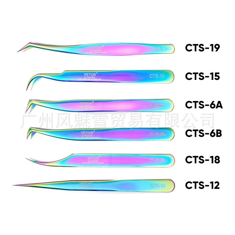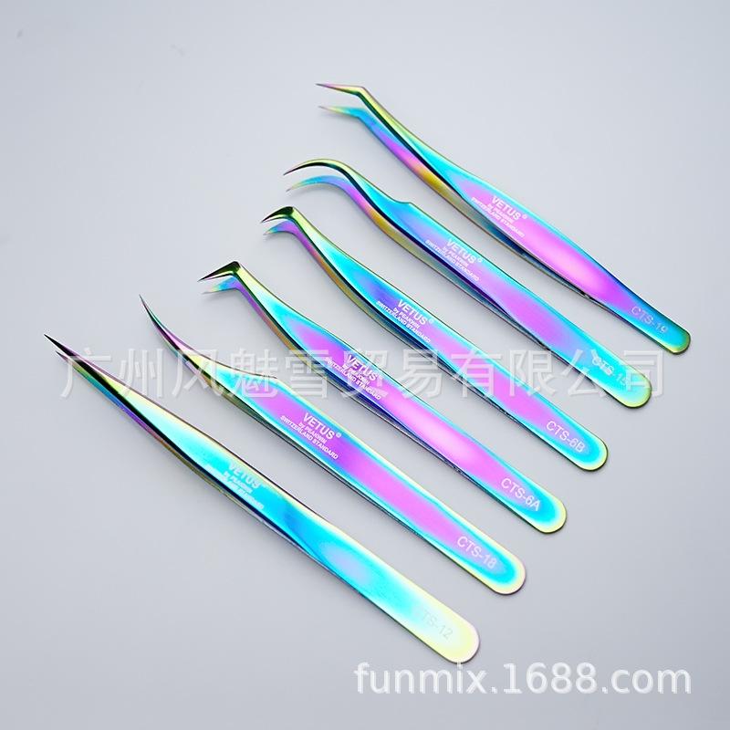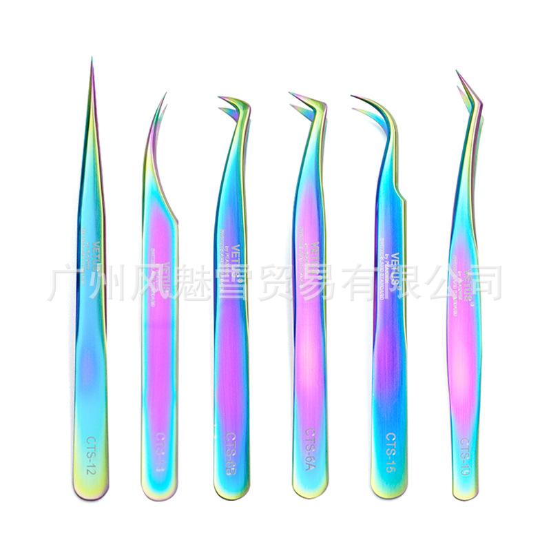 Pinzas para pestañas postizas de color VETUS, pinzas para injerto de pestañas, pinza de pluma dorada con flores, rizador de pestañas de precisión