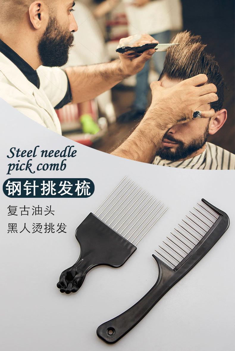 Peine de aguja de acero + peine de dientes anchos, juego de 2 piezas, peine de pelo de puño, tijeras de peluquería antiestáticas, peine de estilo especial para el cabello