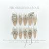 Uñas de estilo hada hechas a mano, con cadena, lazo de encaje, temperamento elegante, longitud media