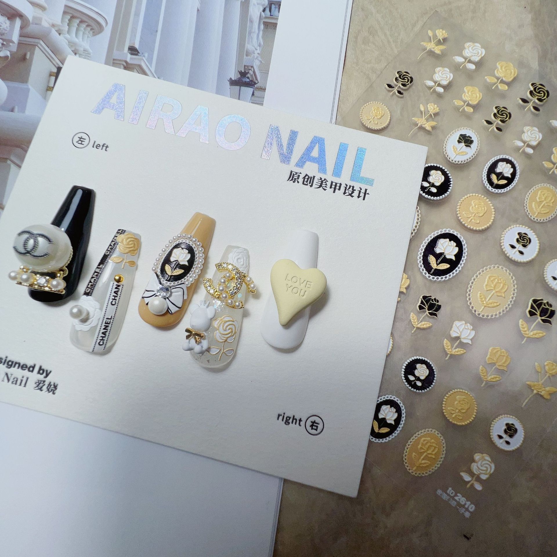 Pegatinas para Uñas con Relieve Tomoni Popular Estilo Japonés Lindas Pegatinas para Uñas Sello de Rosa Accesorios para Uñas al Por Mayor