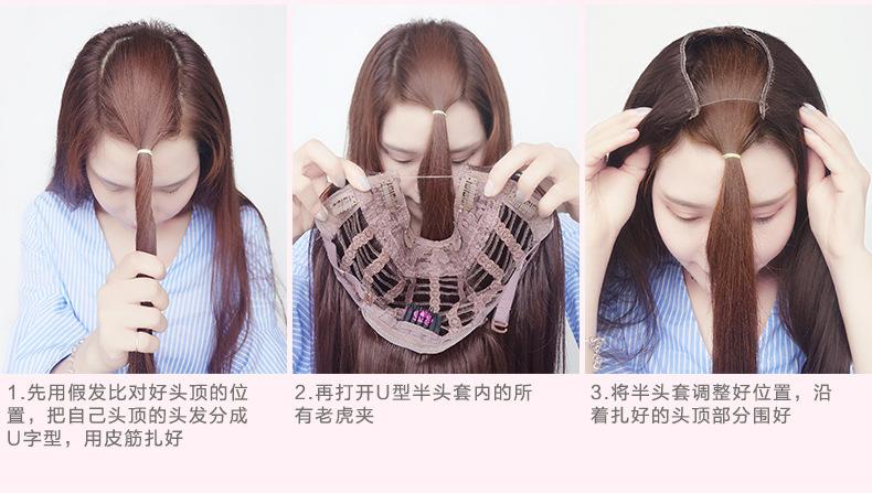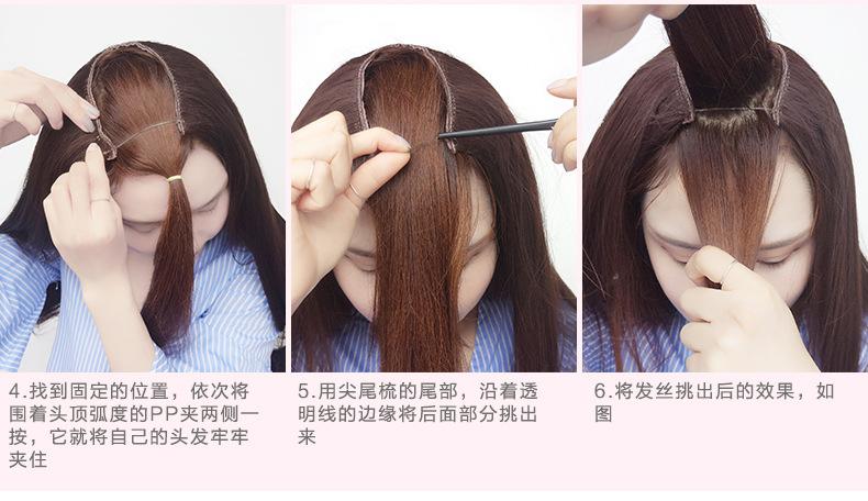 5. El cabello curvado dentro de la peluca se llama "cabello invertido", que generalmente se hace en la raíz del cabello en la parte superior de cada peluca y se utiliza para darle forma.