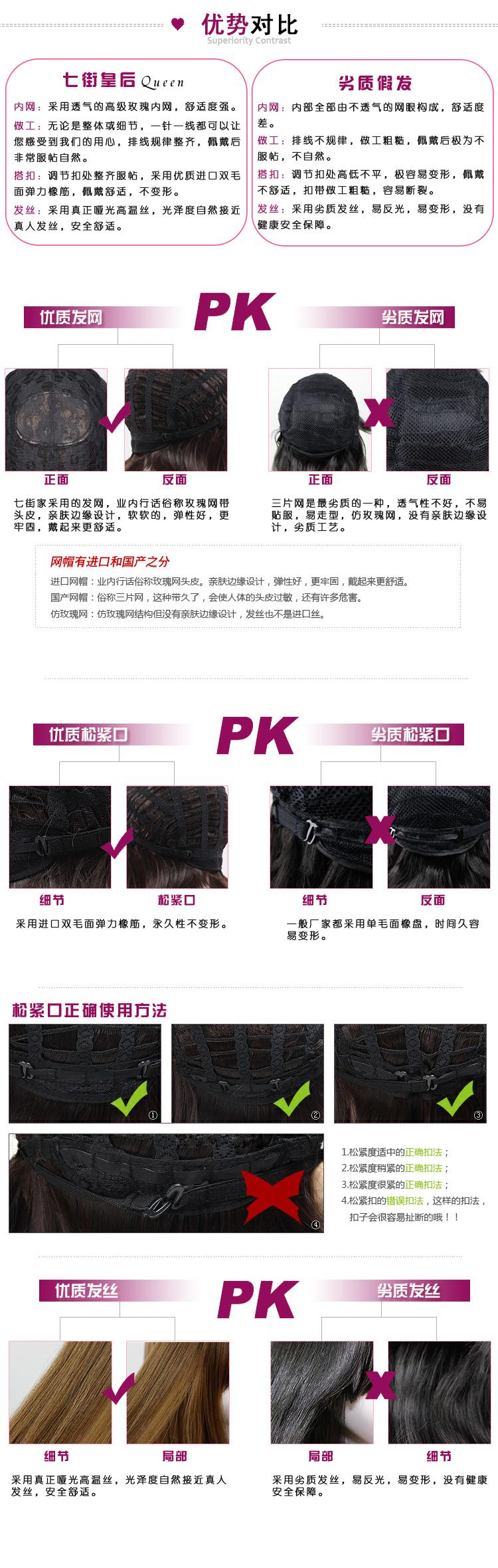 4. Las pelucas se producen en lotes, por lo que inevitablemente habrá pequeños errores al teñir cada lote y se realizarán ligeros ajustes de color según las diferencias en cada peinado.
