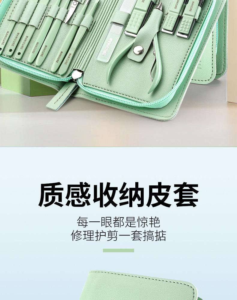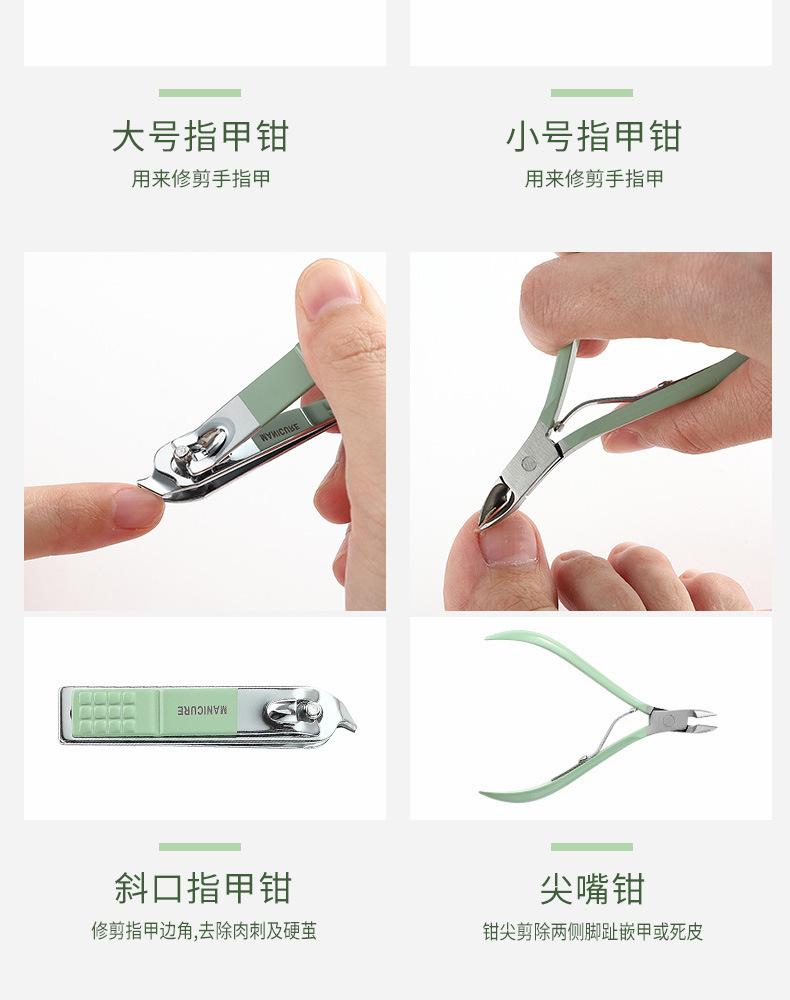 Fabricantes cortaúñas de acero inoxidable juego de 13 piezas multiusos bolsa de cuero cortaúñas Yangzhou tres cuchillos herramientas para uñas