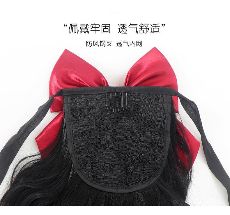 Peluca de cola de caballo para mujer, cabello largo, moño, cola de caballo, correa ondulada, cabello medio largo, cola de caballo falsa, trenza de cabello rizado