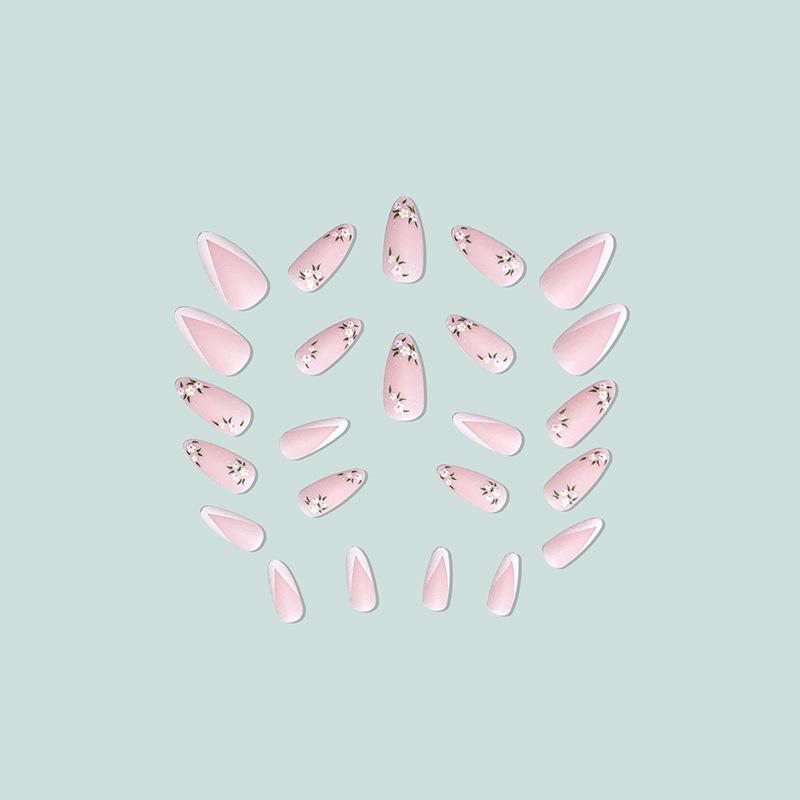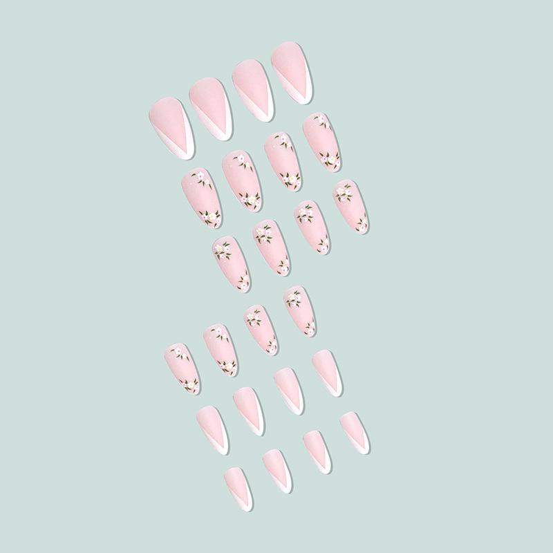 Uñas francesas en forma de V blancas esmeriladas, belleza, uña postiza pequeña con diseño floral, parche para uña, pieza de uña extraíble
