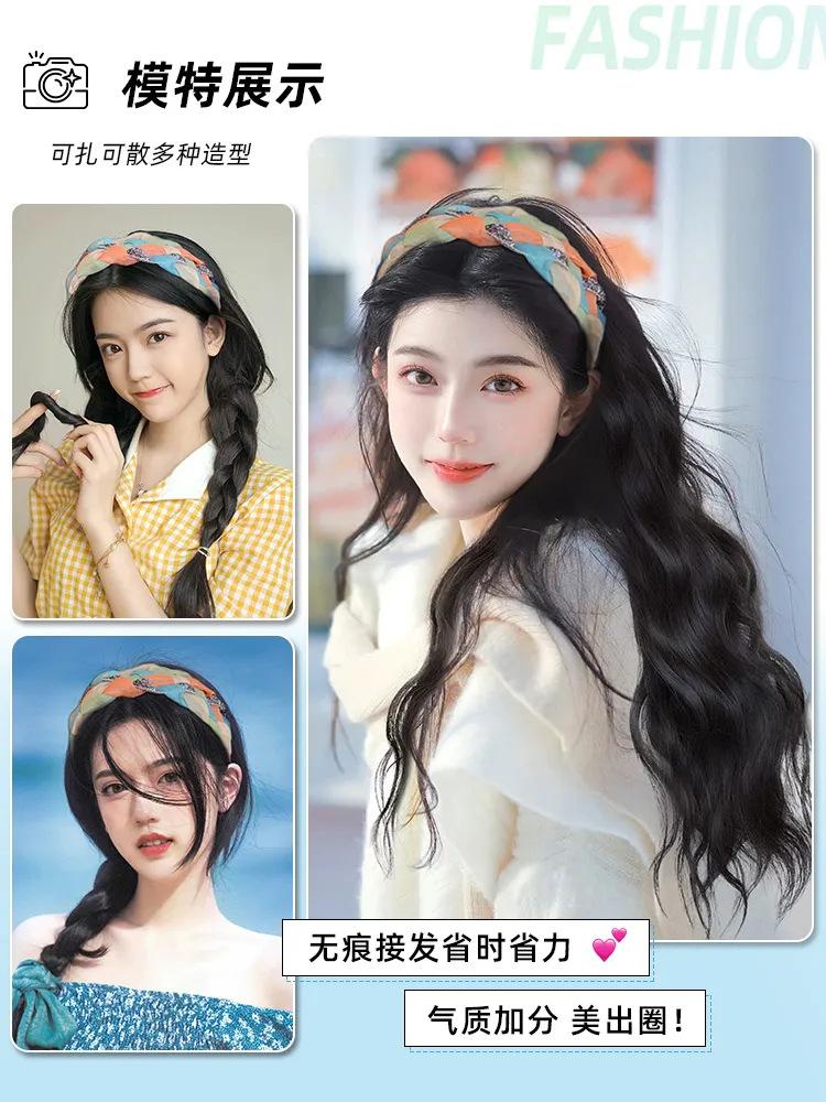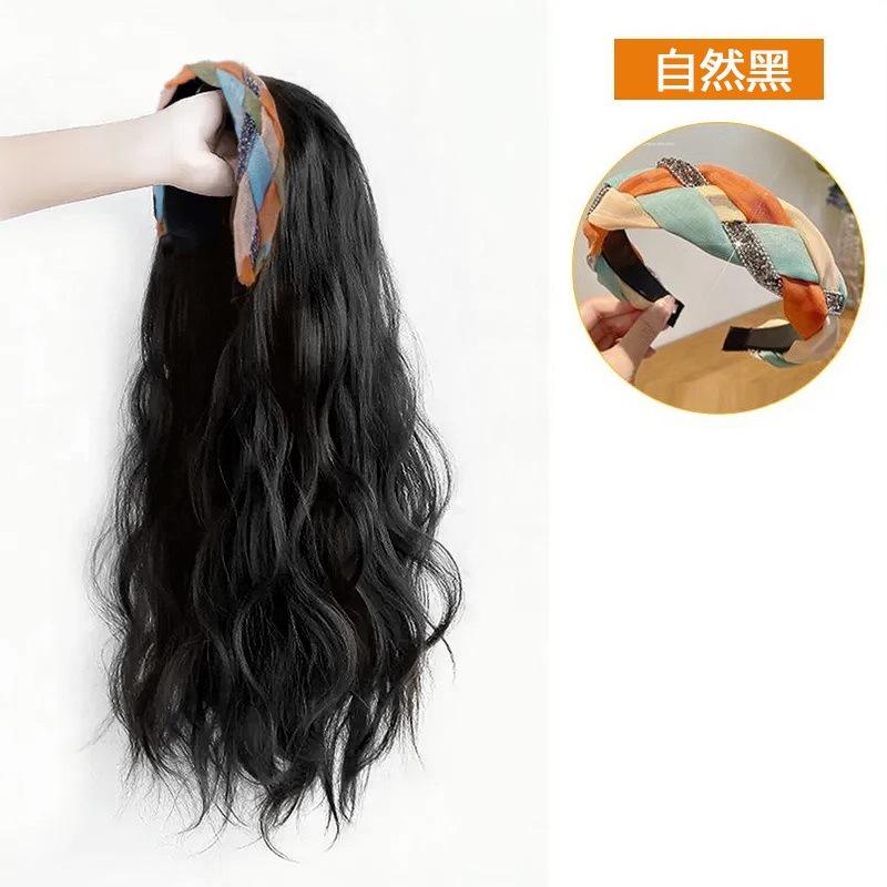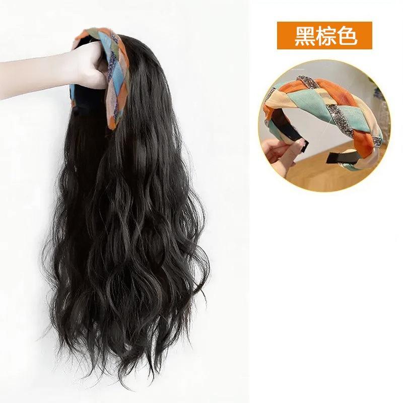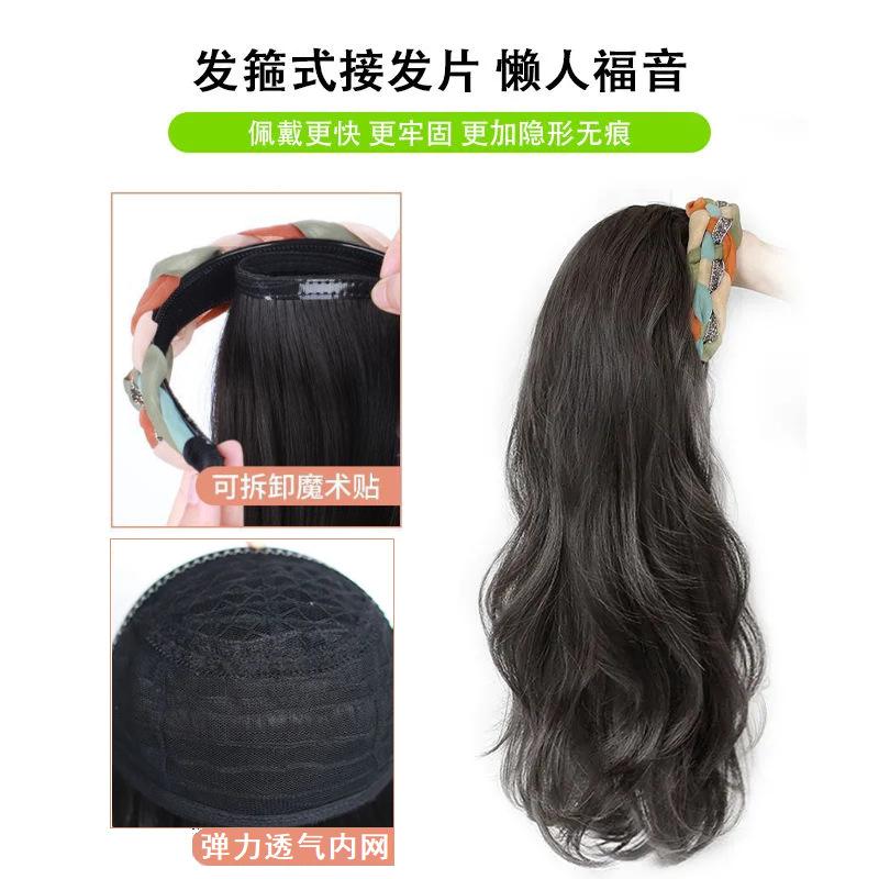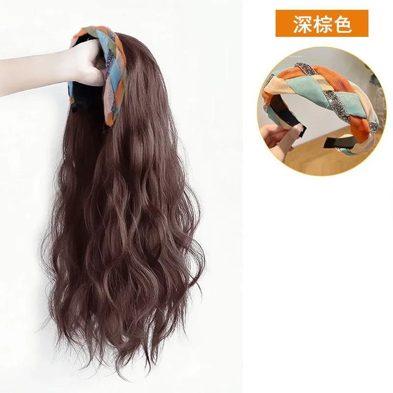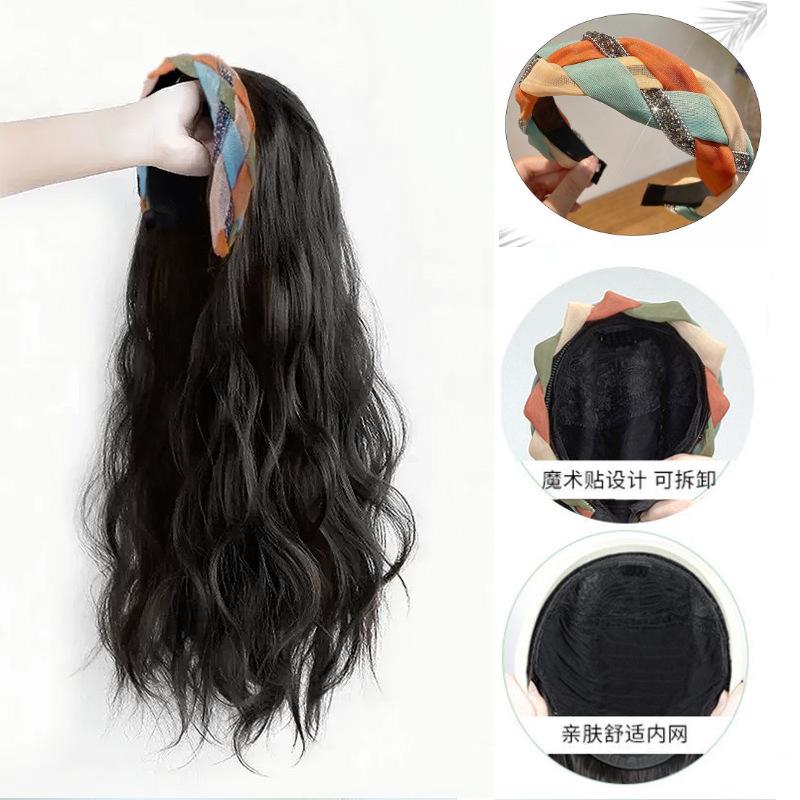 Diadema de malla cosida con media cubierta para la cabeza, diadema perezosa, cubierta para la cabeza para cabello largo y rizado, temperamento suave, peluca de onda de agua y onda grande