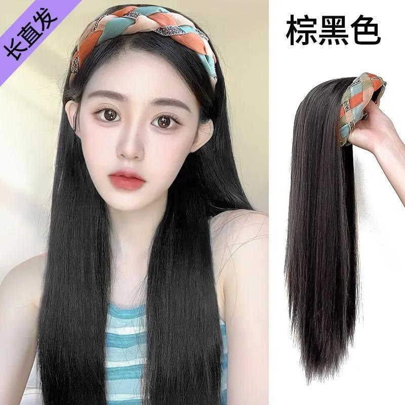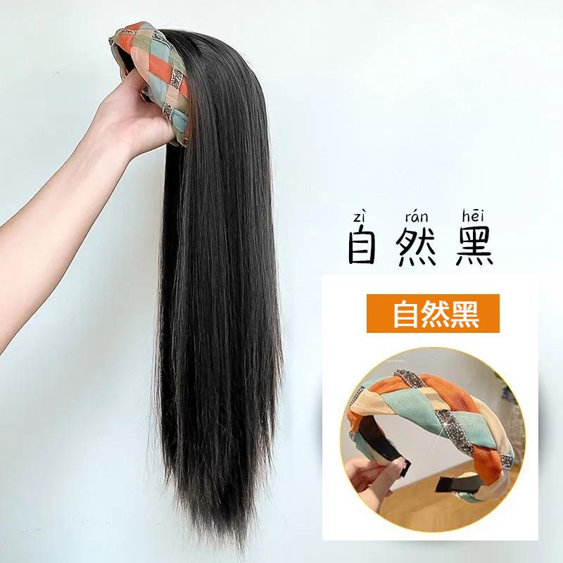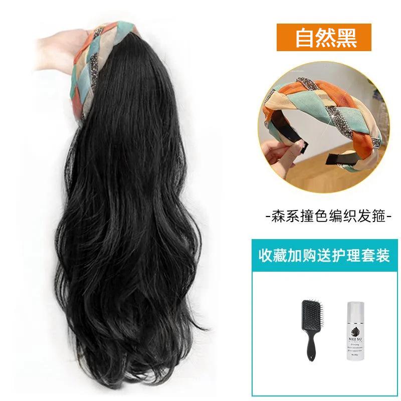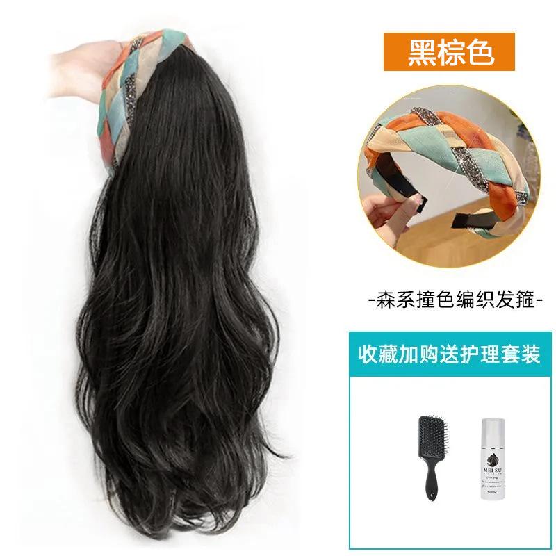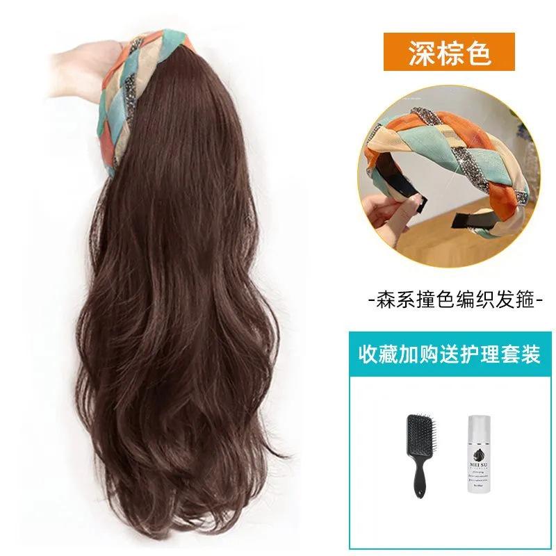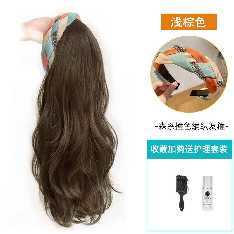 Diadema de malla cosida con media cubierta para la cabeza, diadema perezosa, cubierta para la cabeza para cabello largo y rizado, temperamento suave, peluca de onda de agua y onda grande