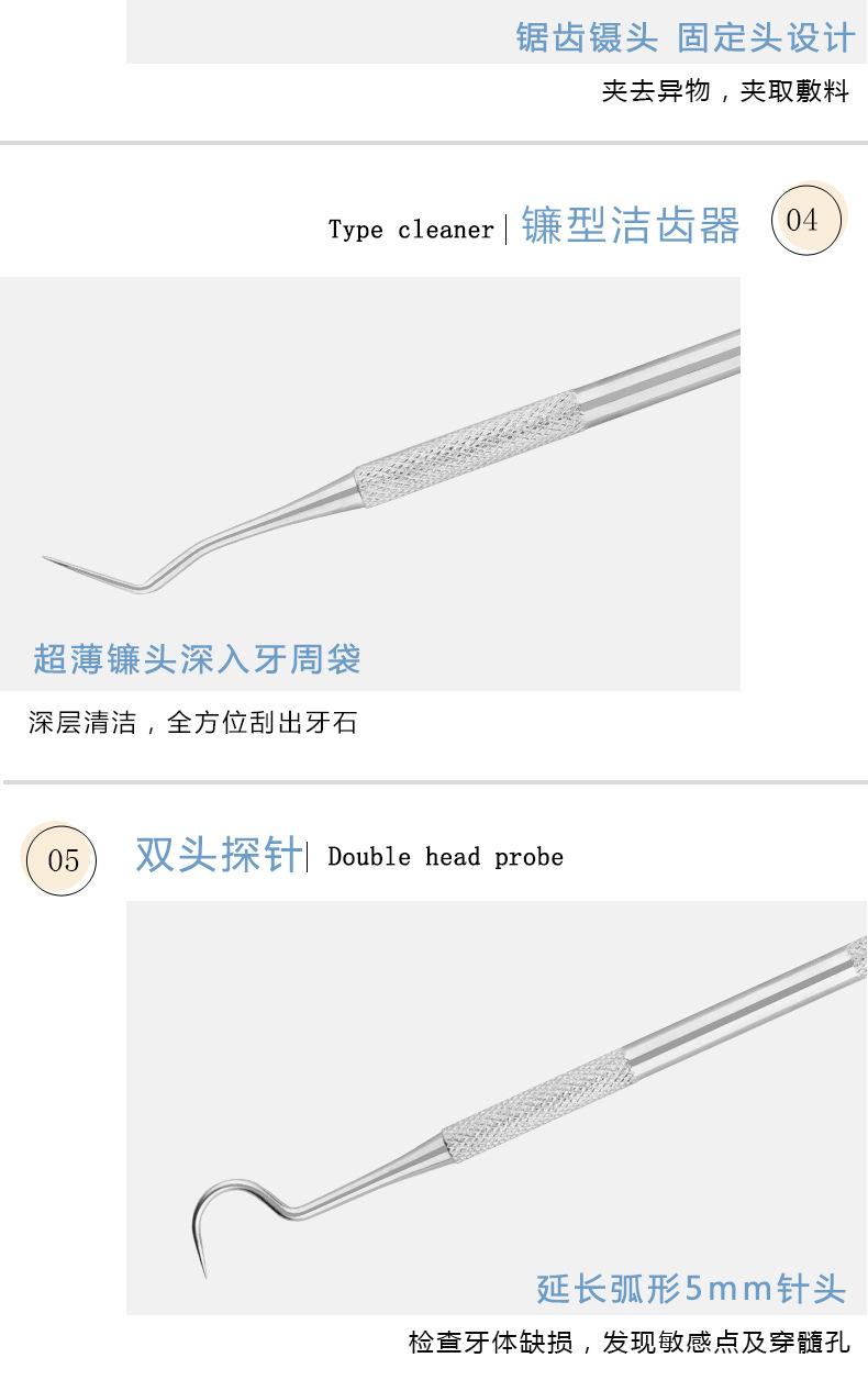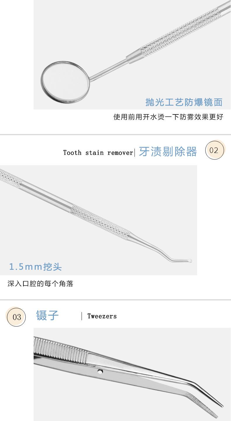 Fabricante de herramientas dentales de acero inoxidable 304, adecuadas para la combinación multiusos de pinzas y sondas para blanqueamiento dental, herramientas bucales.