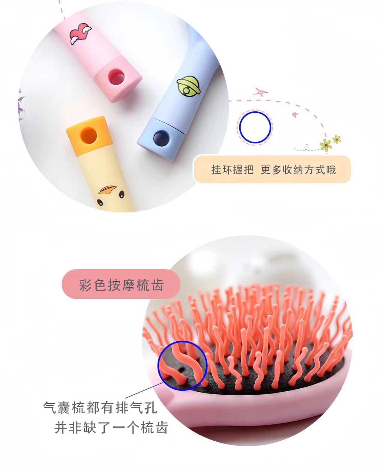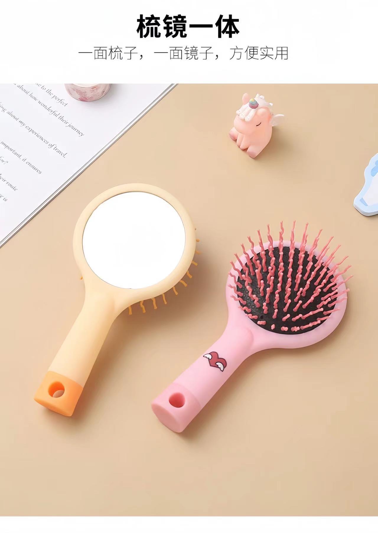 Peine para Niñas Lindo Dibujo Animado Peine Cojín de Aire Peine para Niñas para Dormitorio Infantil Hogar Peluquería Peine Portátil Espejo Peine de Masaje
