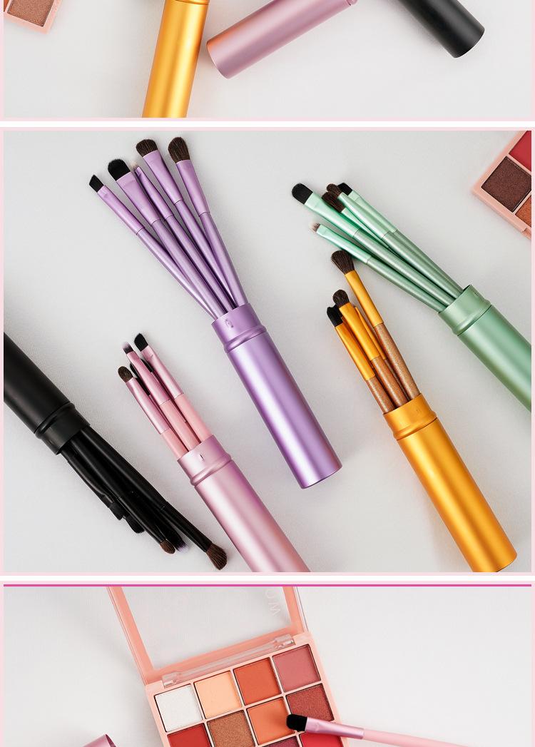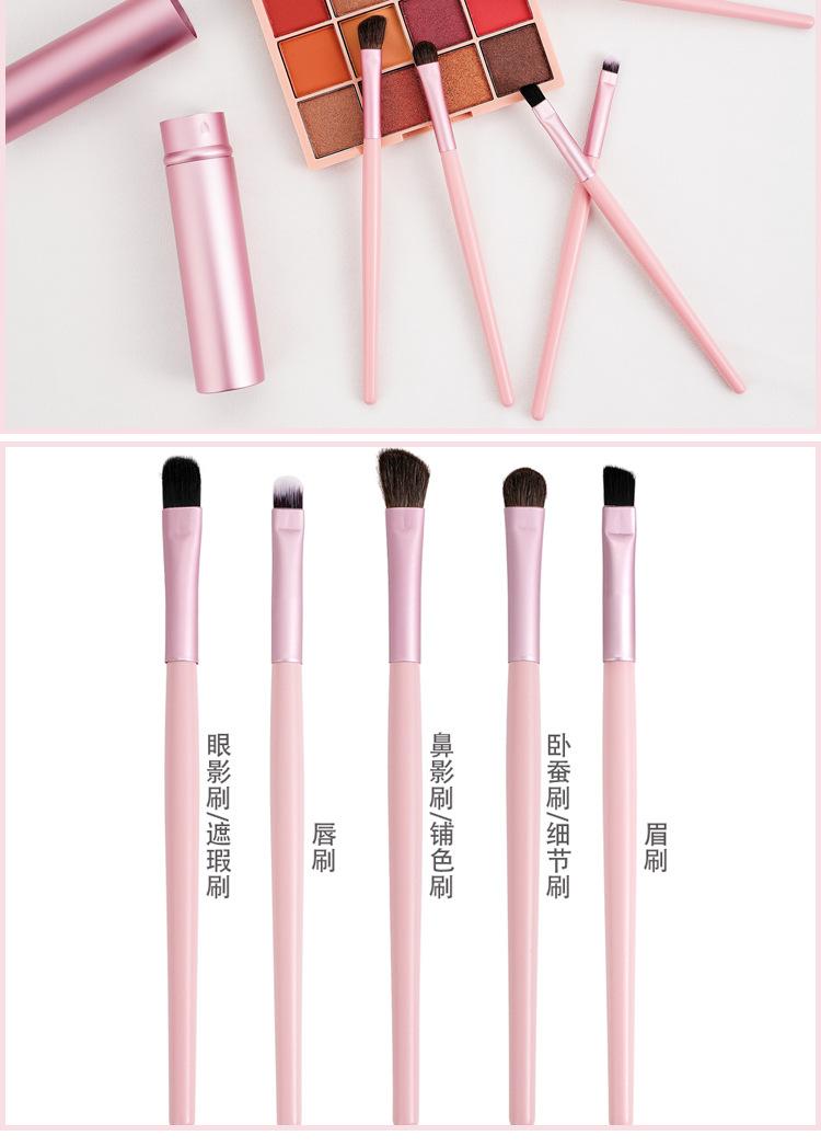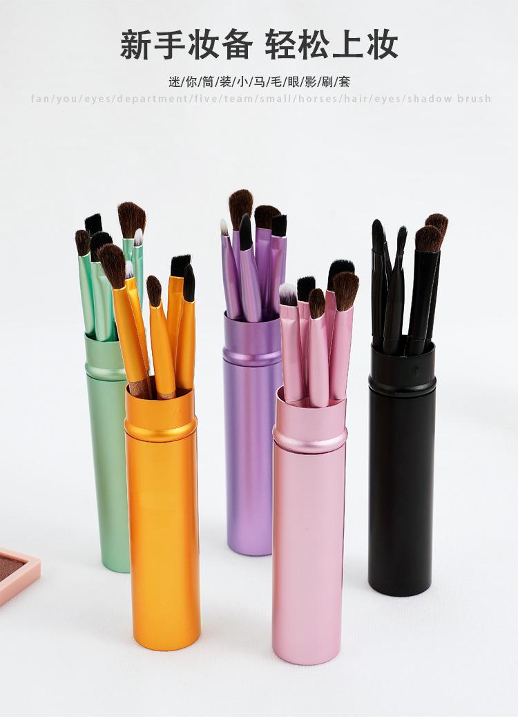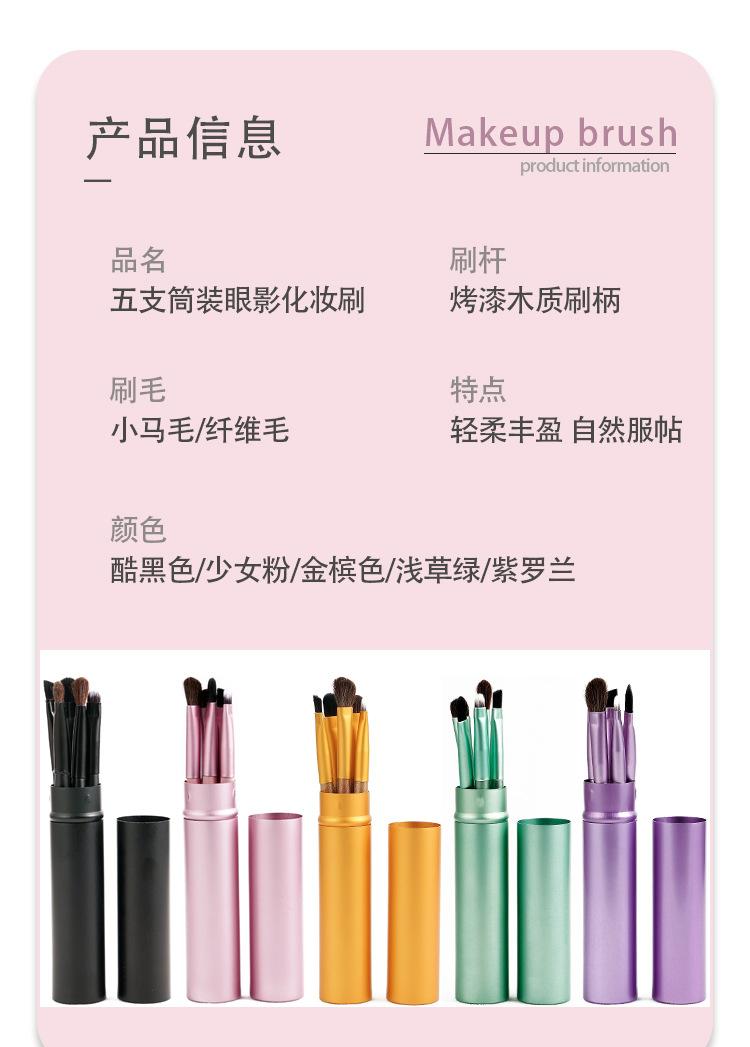 Cinco pinceles de maquillaje cilíndricos, pinceles para sombras de ojos, pinceles para corrector, pinceles para cejas, pinceles para labios, herramientas de maquillaje, pinceles de maquillaje para estudiantes, juego de pinceles asequible.