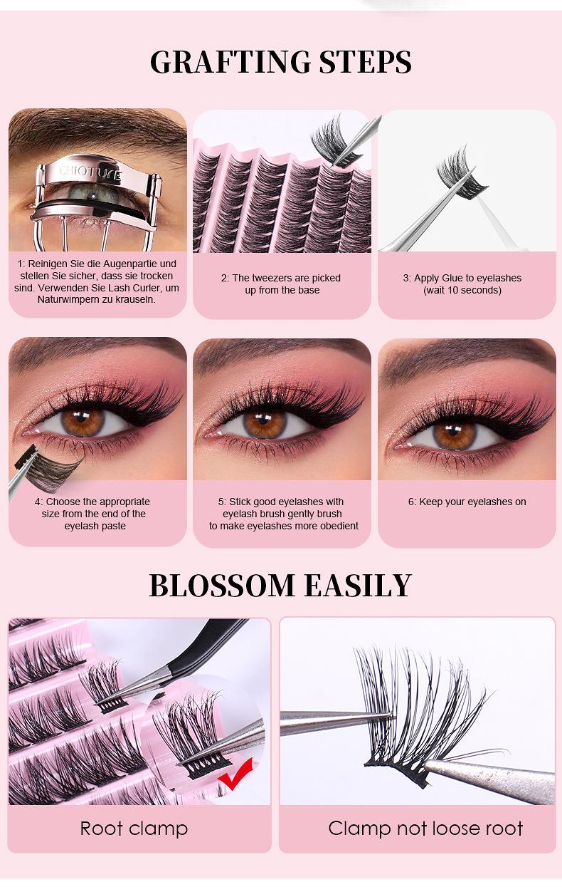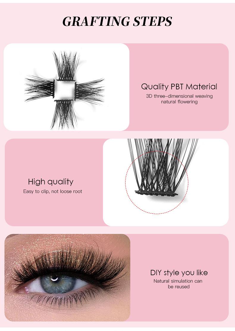 Amazon pestañas postizas populares de 10 filas europeas y americanas racimo individual naturales gran capacidad DIY pestañas segmentadas de injerto de cabello