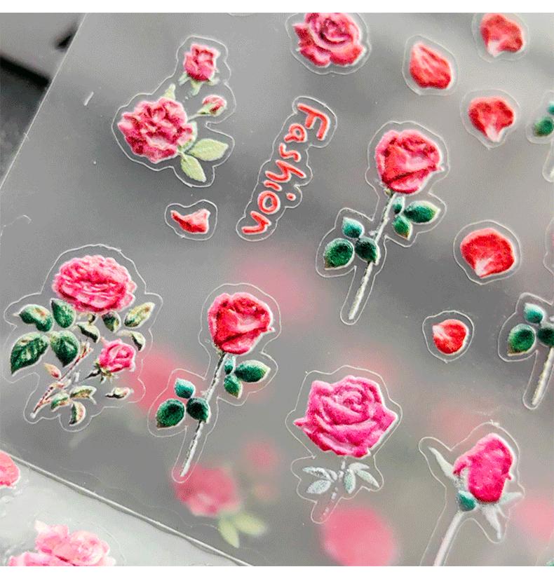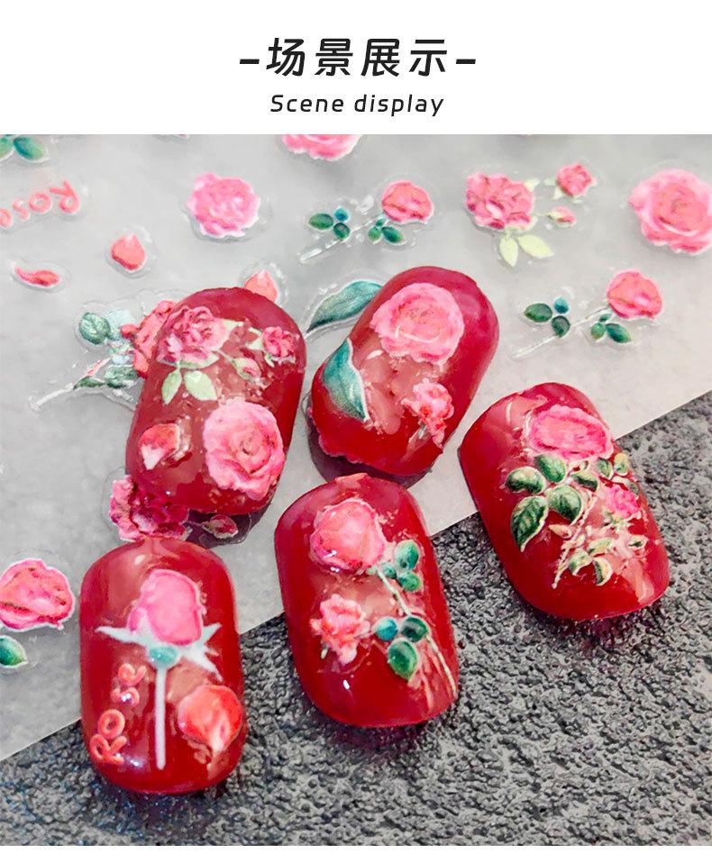 Compra Pegatinas de uñas de dibujos animados 5D, pegatinas de flores, pequeño libro rojo, pegatinas de uñas en relieve populares, pegatinas decorativas con patrón pequeño, mezcladas al por mayor al por mayor en Joom.pro