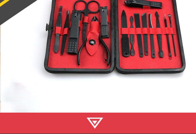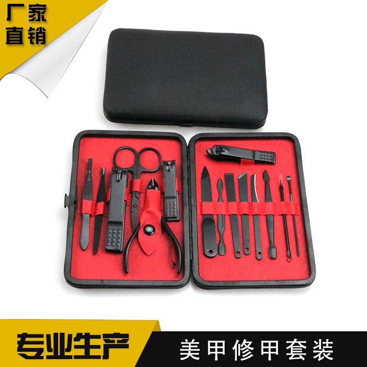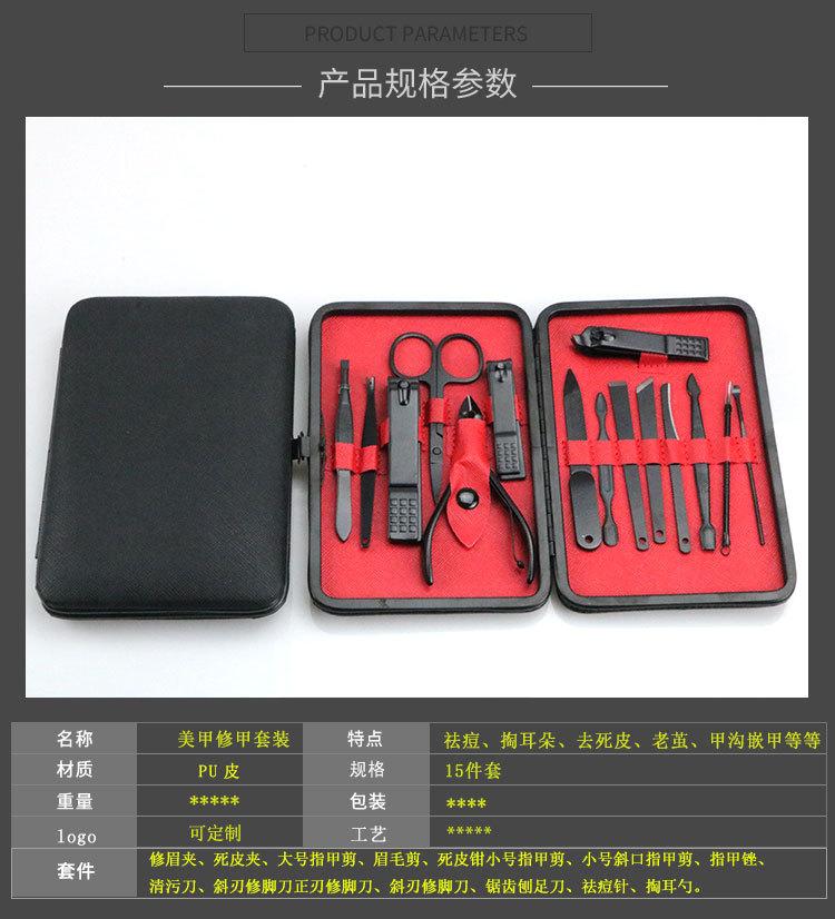 Set de cortaúñas negro 15 piezas cortaúñas tijeras para uñas belleza manicura herramientas de manicura pedicura logo personalizado