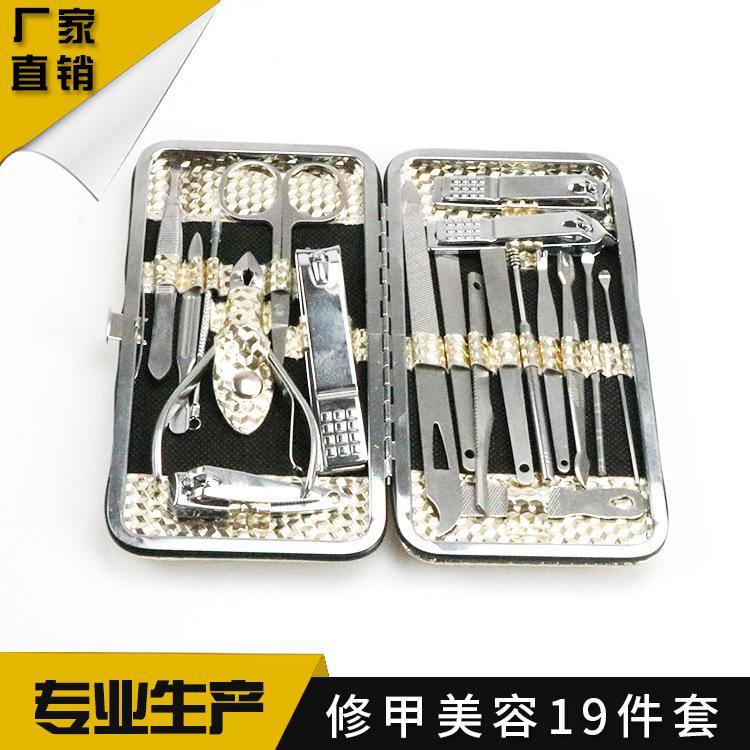 Cortauñas de acero inoxidable juego de 19 piezas juego de herramientas de manicura de belleza cortauñas al por mayor LOGO personalizado