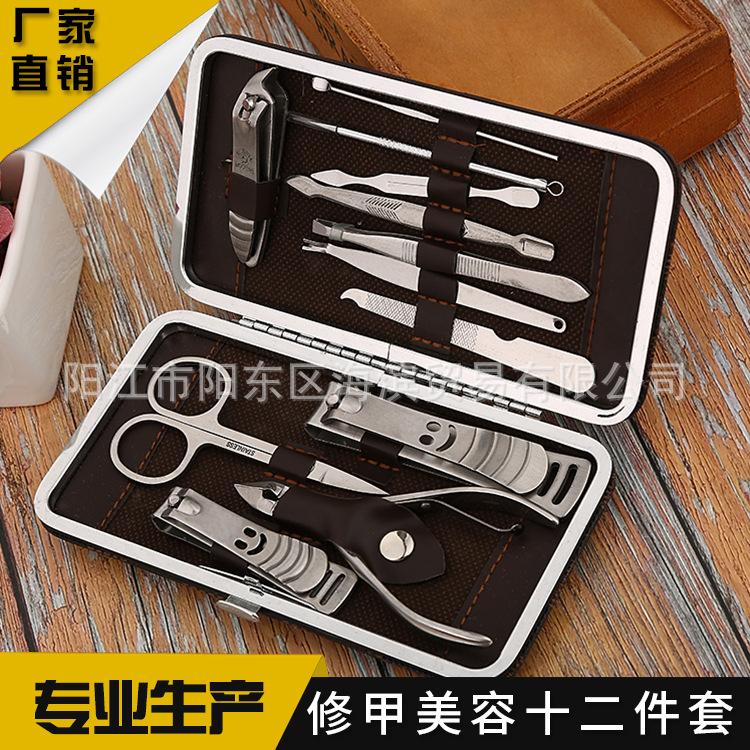 Tijeras de uñas de acero inoxidable juego de belleza de 12 piezas cortaúñas cortaúñas herramientas de manicura juego de tijeras para piel muerta