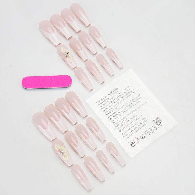 Compra Uñas francesas largas con lazo blanco, estilo transfronterizo, parches para uñas desmontables, venta al por mayor al por mayor en Joom.pro