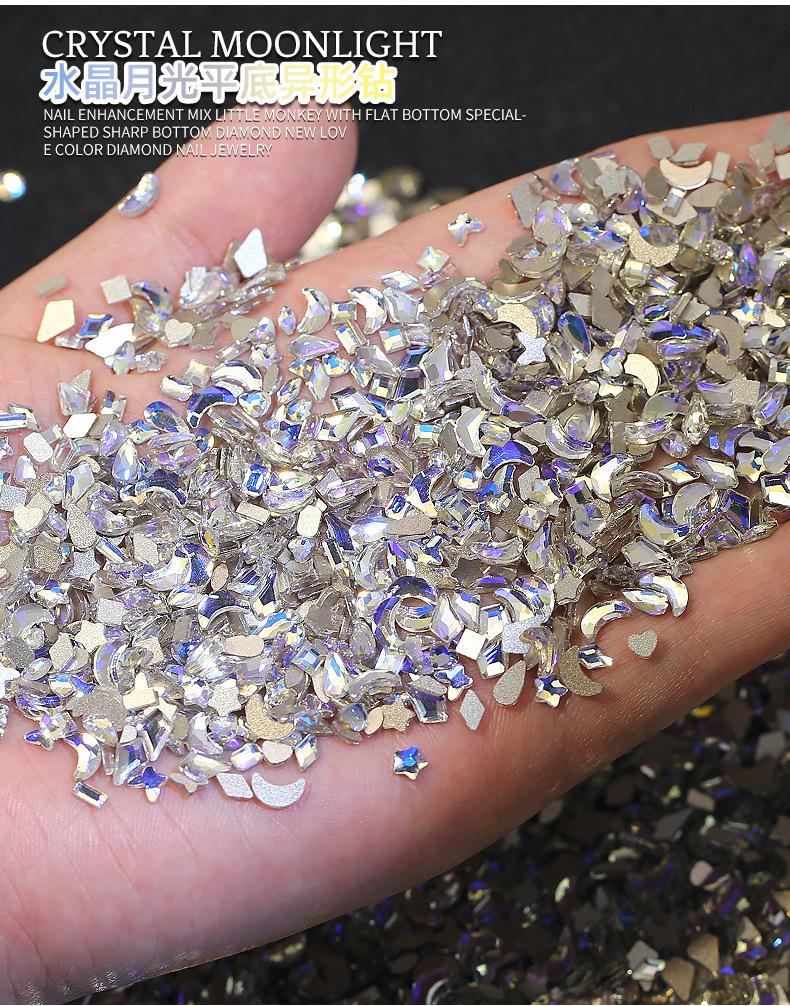 Venta al por mayor Taladro de uñas color Luz de Luna flash Mini tamaño pequeño Amor mariposa estrella plano diamante de forma especial decoraciones de uñas