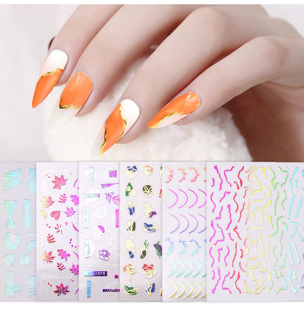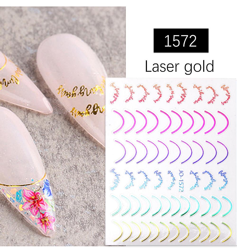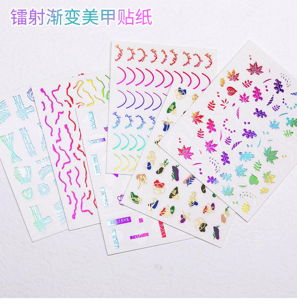 Nuevas pegatinas de arte de uñas láser transfronterizas al por mayor, pegatinas para uñas francesas con degradado de color, calcomanías de arte de uñas con líneas metálicas de imitación