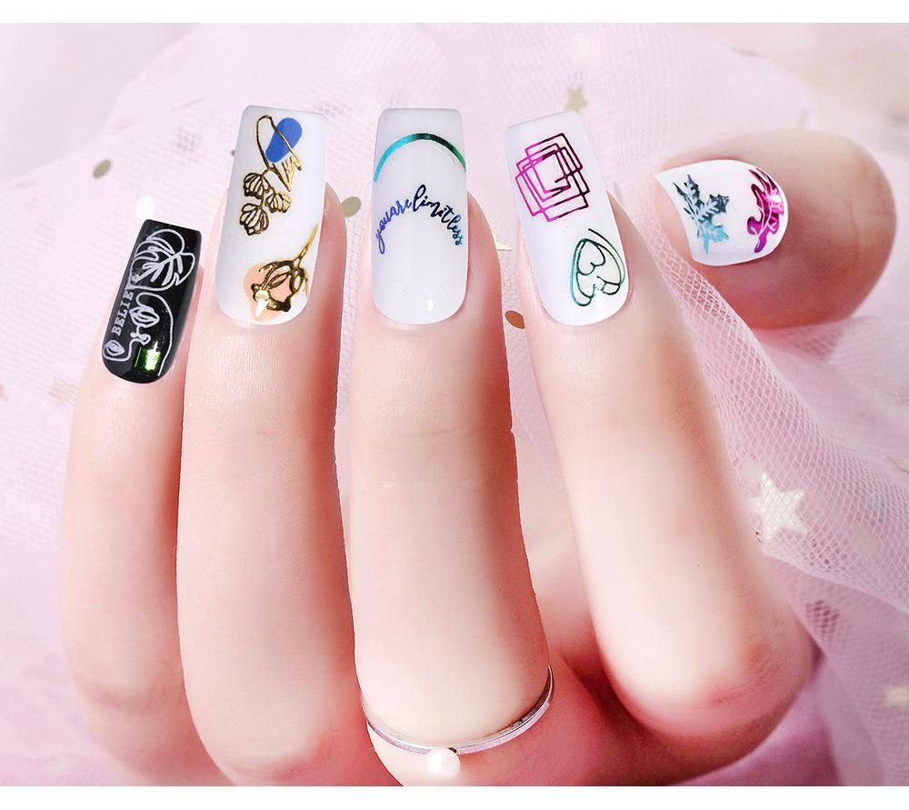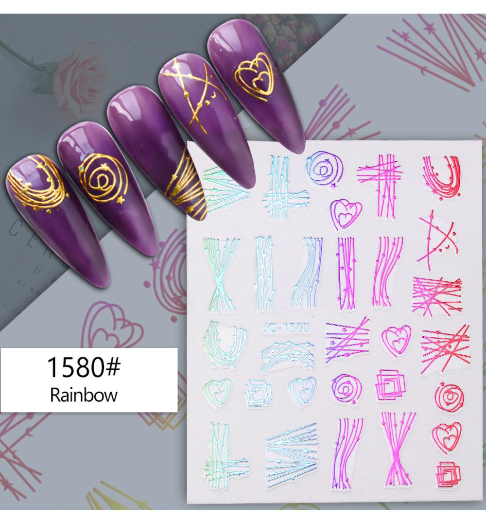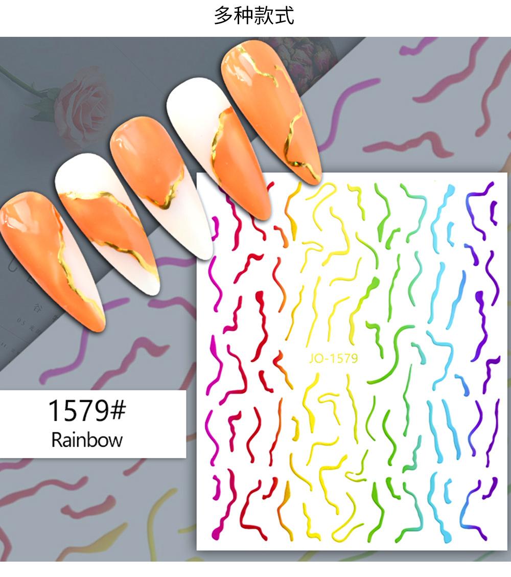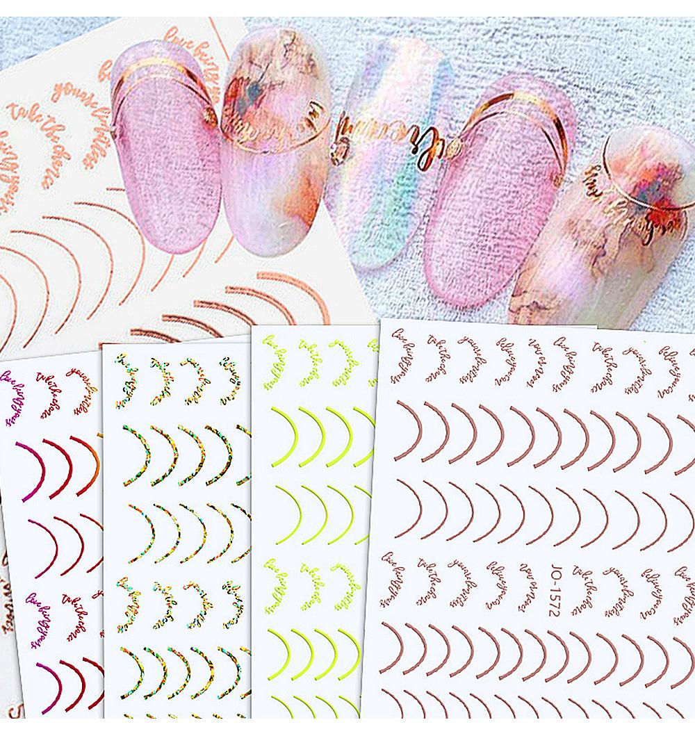 Nuevas pegatinas de arte de uñas láser transfronterizas al por mayor, pegatinas para uñas francesas con degradado de color, calcomanías de arte de uñas con líneas metálicas de imitación