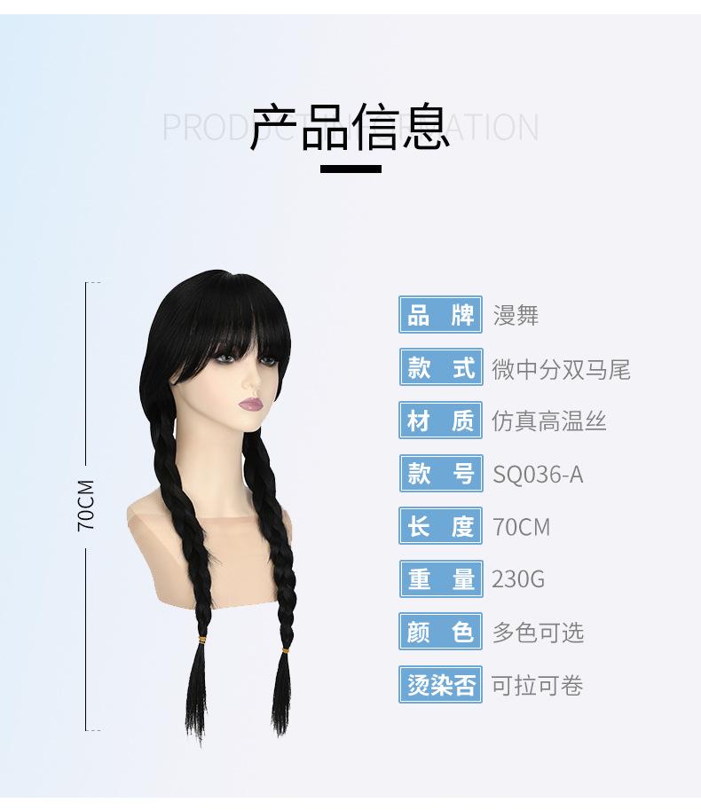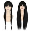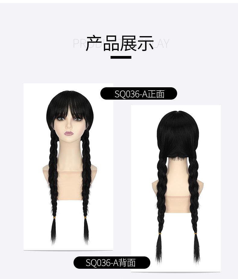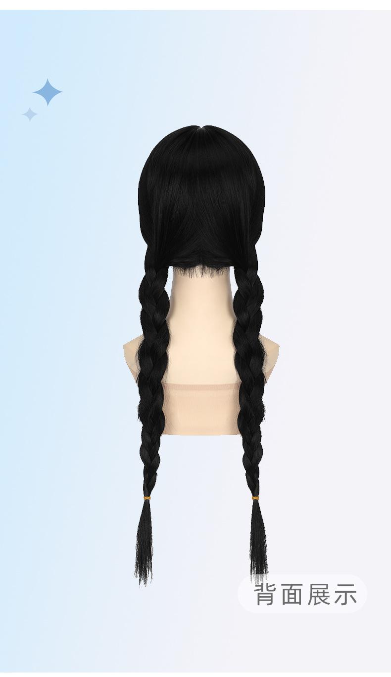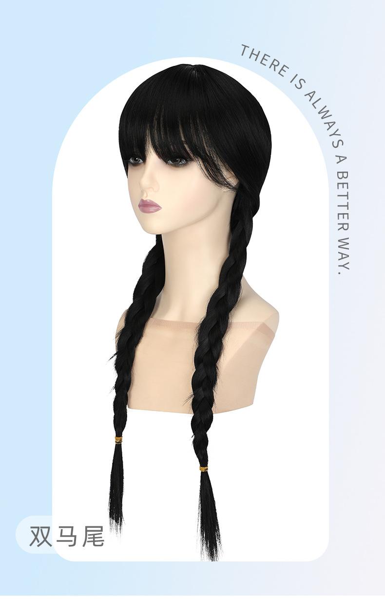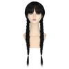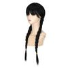 Peluca de mujer con capucha completa, serie de televisión estadounidense, Wednesday Adams Family, cosplay de anime, cola de caballo doble negra, trenza