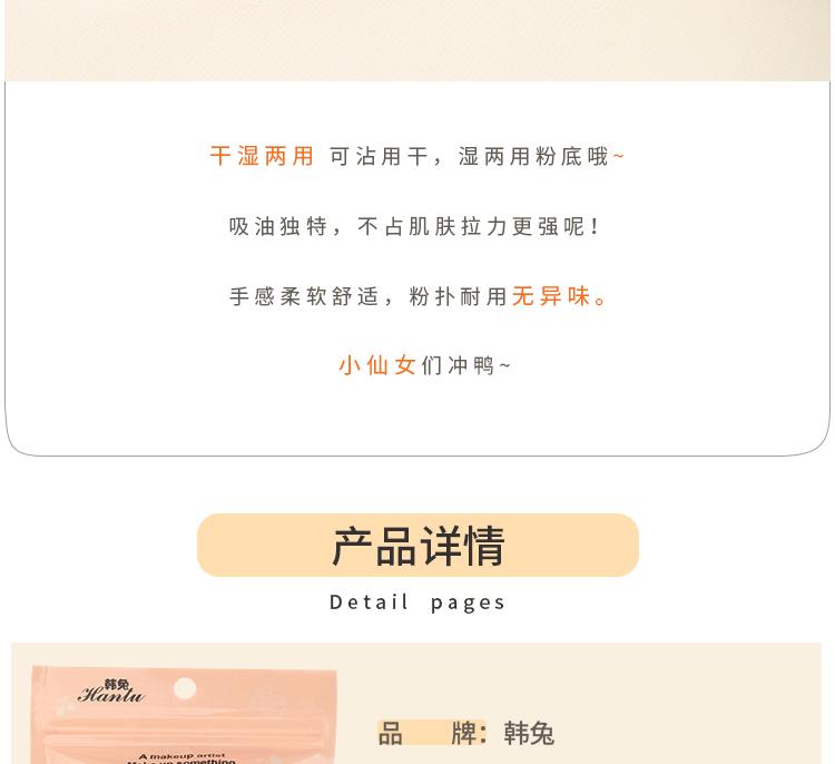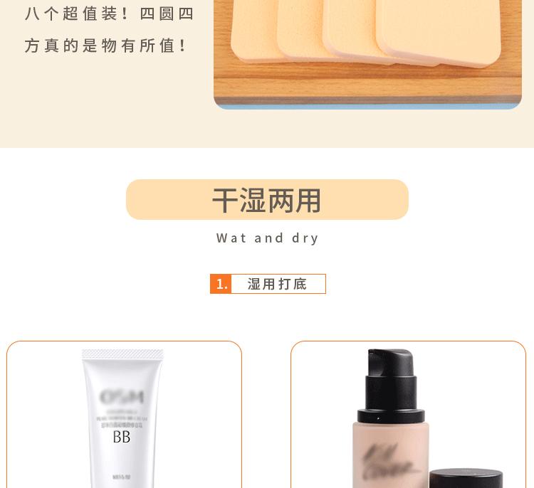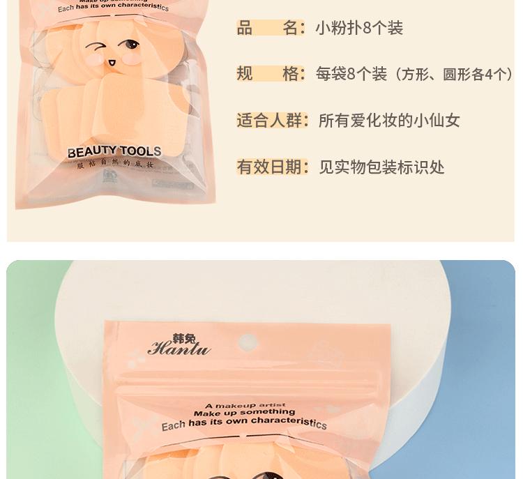 Han conejo ocho piezas borla para polvo redonda cuadrada esponja húmeda y seca tamaño diario borla para polvo maquillaje base polvo BB pastel