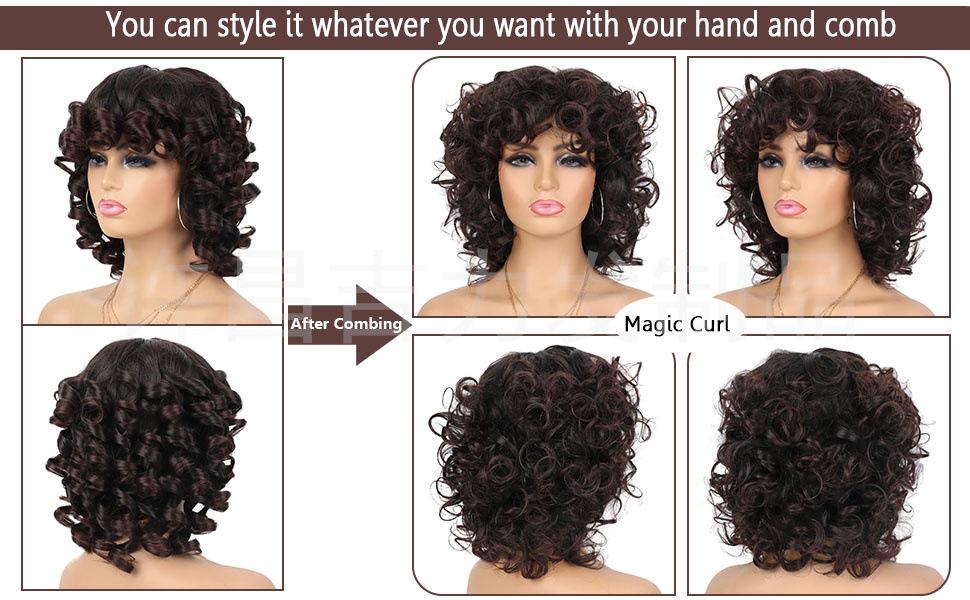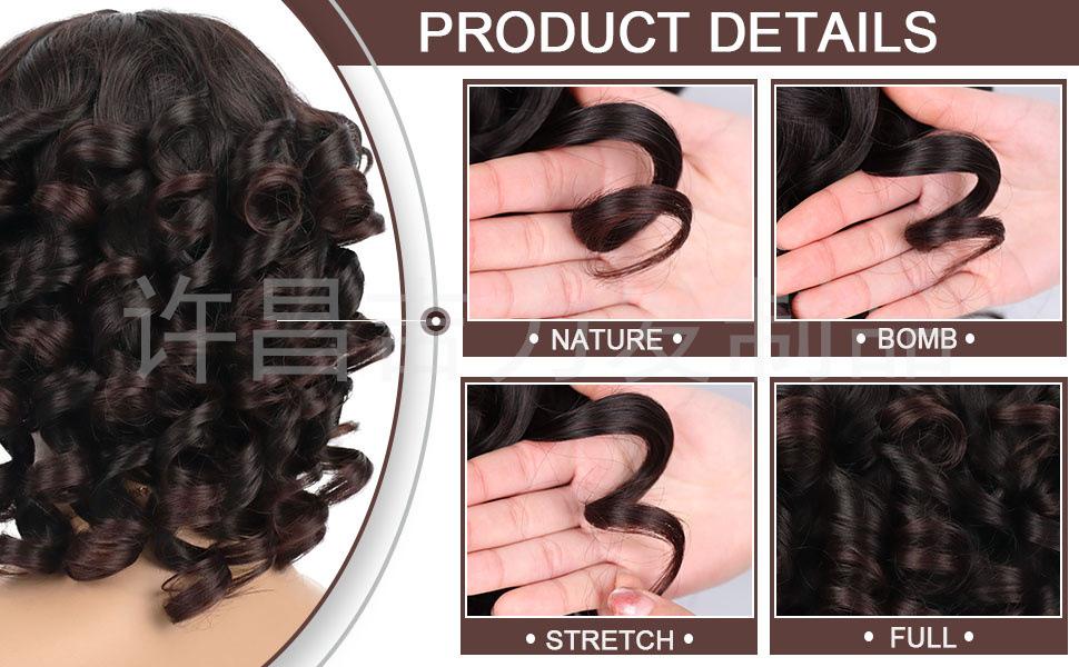 6: Para peinados con cabello corto y rizado, agítelos para desenrollarlos después de recibir el producto.