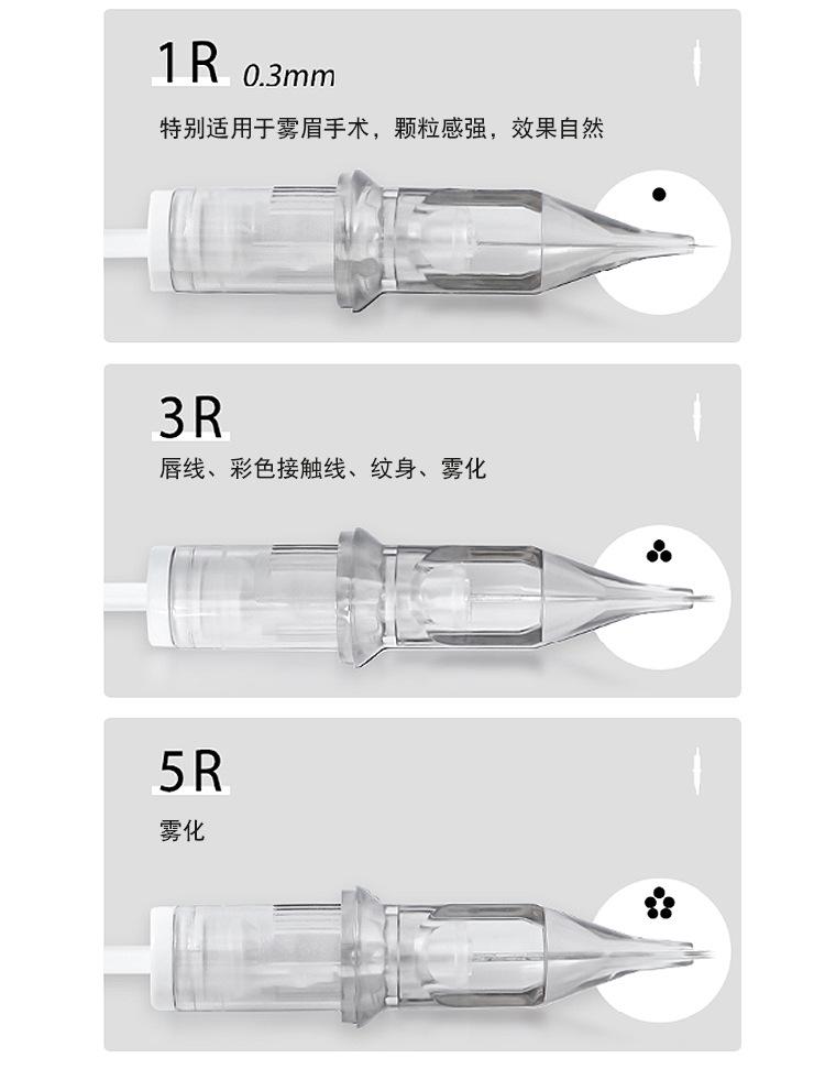 0.18mm single needle, 0.25mm single needle, 0.3mm single needle, Round three needle, Round five needle, 0.35mm single needle