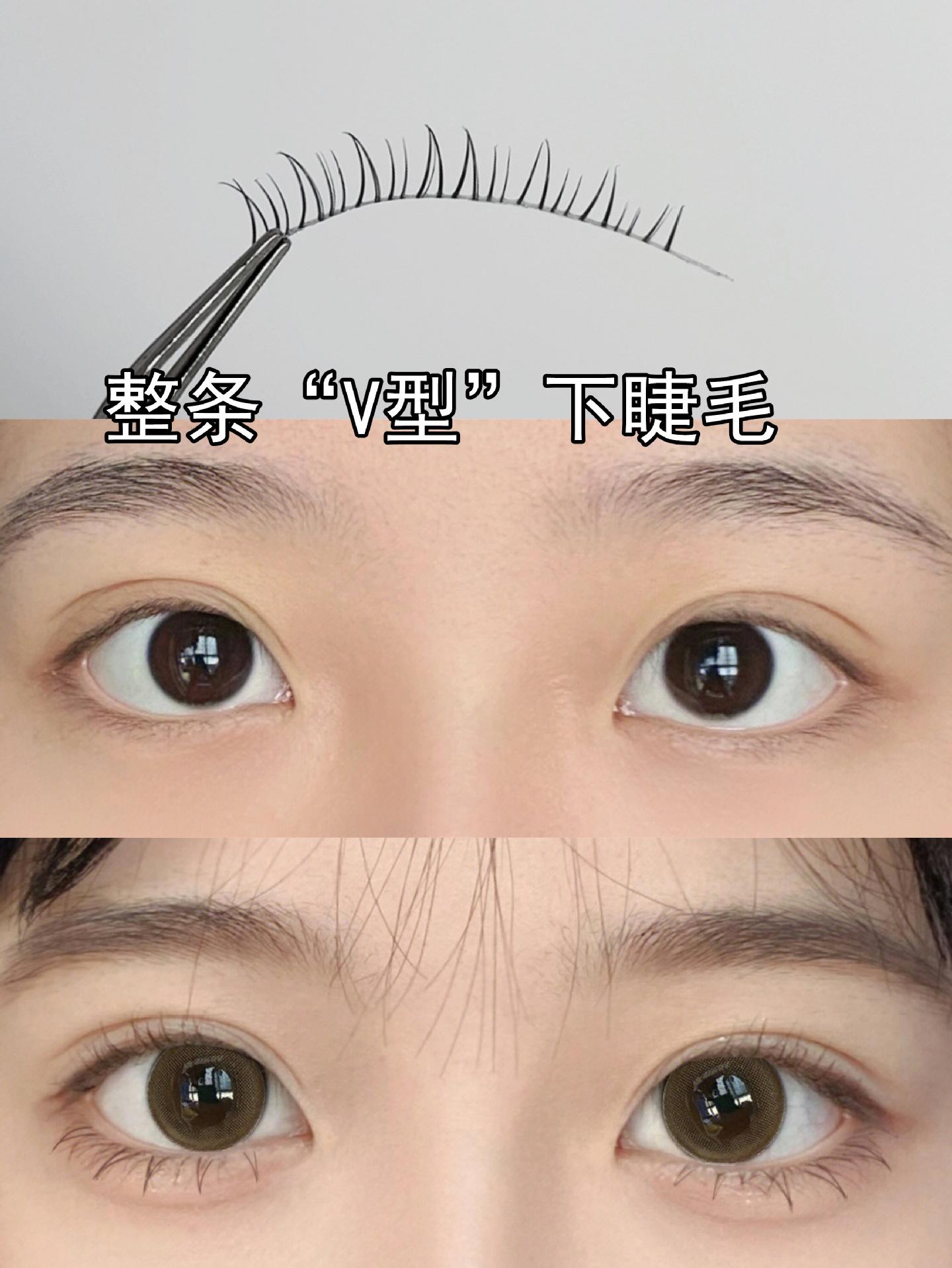 Pestañas postizas inferiores enteras en forma de V, pestañas naturales para mujer, pintadas a mano, de una sola pieza, con tallo transparente fino, pestañas naturales