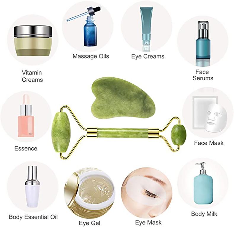 Masajeador Facial Rodillo de Cristal de Jade Levantamiento Facial en V Doble Cabezal Belleza Facial Masaje Lifting Facial Moldeado Facial