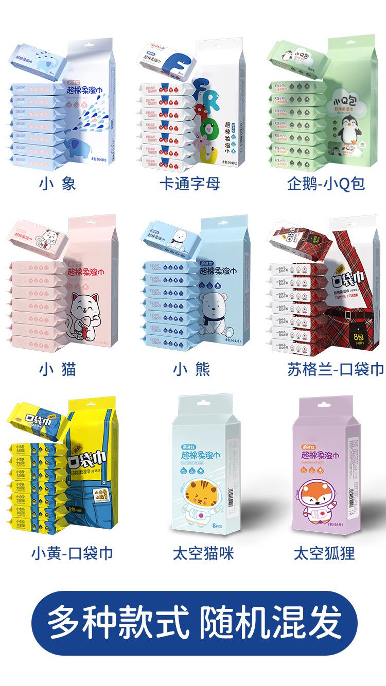 Mangosteen (8 pieces × 4 packs), Crocodile (8 pieces × 4 packs), Cartoon mini english wet wipes (8 pieces × 8 ...