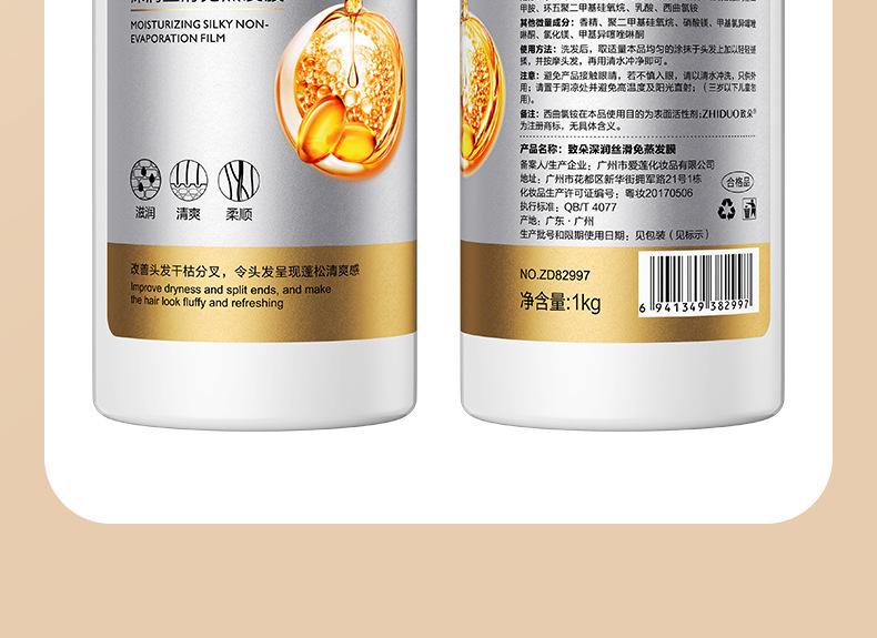 Película hidratante profunda, sedosa y sin evaporación, cuidado del cabello suave e hidratante, cuidado de las puntas del cabello, película capilar de gran capacidad