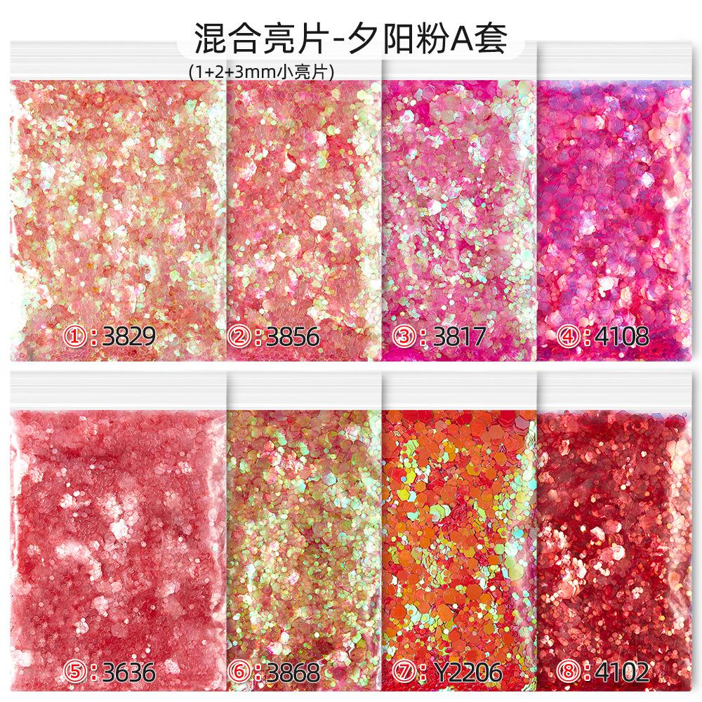 Ultra-fine glitter-Sunset powder A set, 1mm small sequins-sunset pink A set, Mixed Series-Sunset powder A set,...