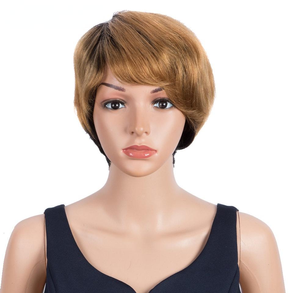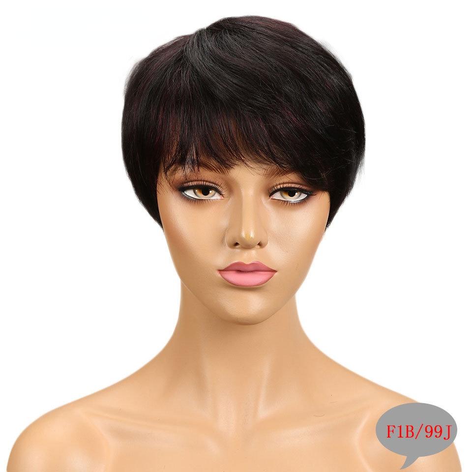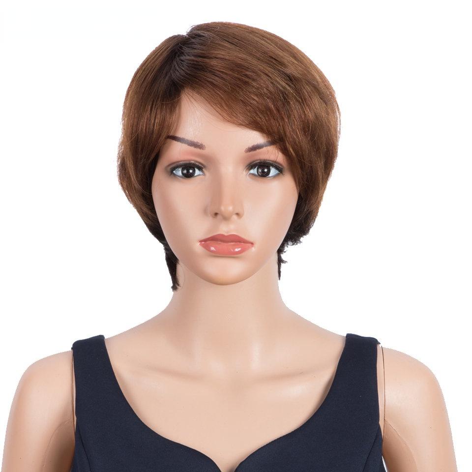 Peluca de cabello humano Rebecca, estilo europeo y americano, con cobertura total para la cabeza, cabello real, cabello corto y liso, mecanismo de cobertura para la cabeza de 8 pulgadas.
