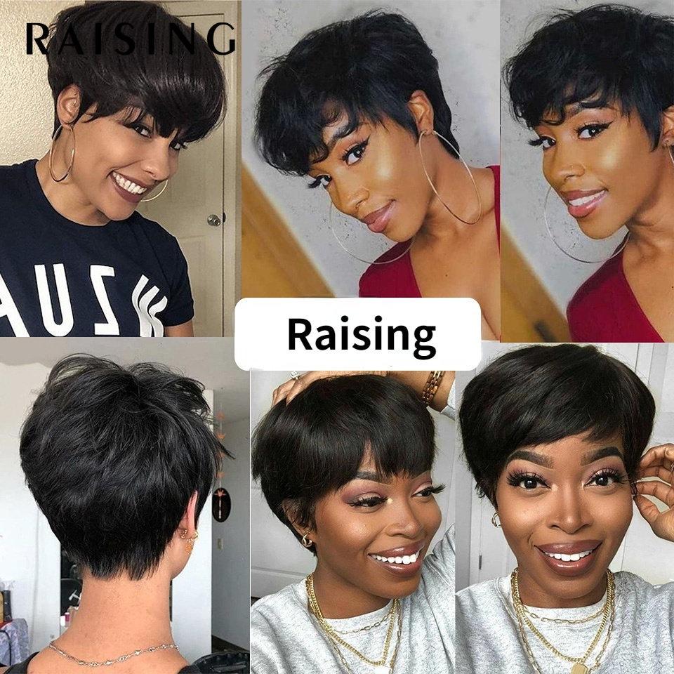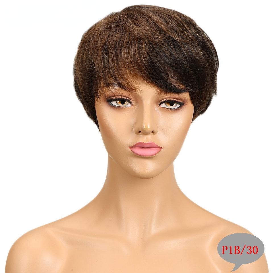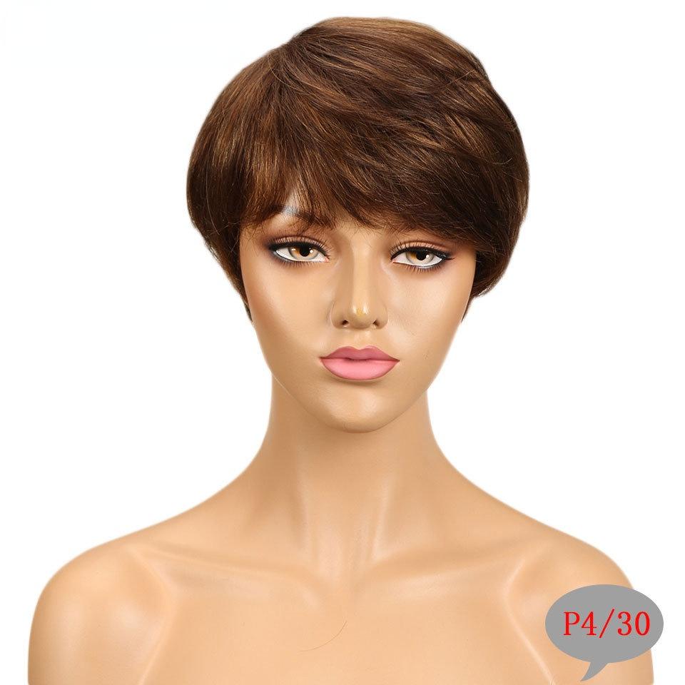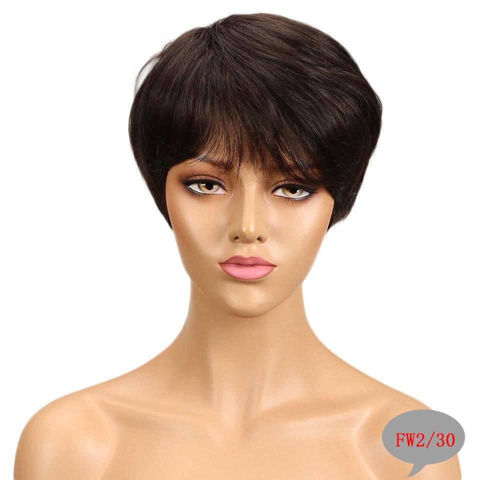 Peluca de cabello humano Rebecca, estilo europeo y americano, con cobertura total para la cabeza, cabello real, cabello corto y liso, mecanismo de cobertura para la cabeza de 8 pulgadas.