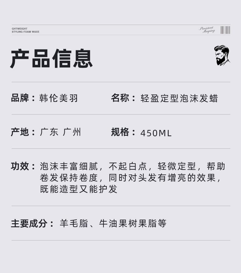 Han Lun Meiyu E Espuma de Peinado Ligera Cera para el Cabello Textura Mate Barro para el Cabello Peinado Estable Sin Colapso Refrescante