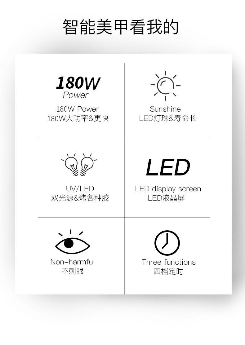 Lámpara de uñas SUNX7 MAX 180W lámpara de uñas portátil lámpara para hornear uñas UV lámpara de fototerapia de uñas de inducción automática