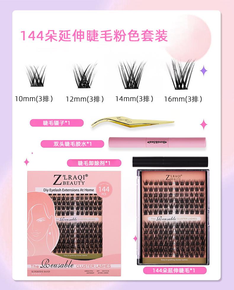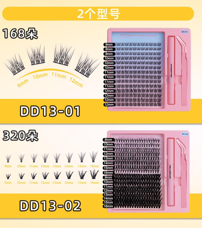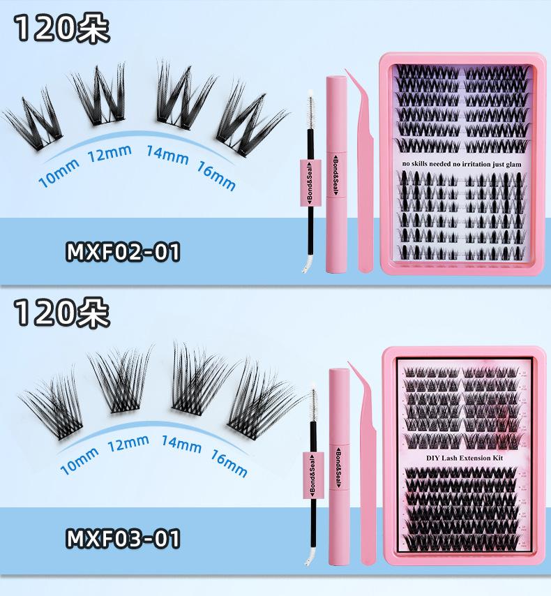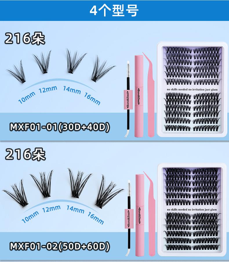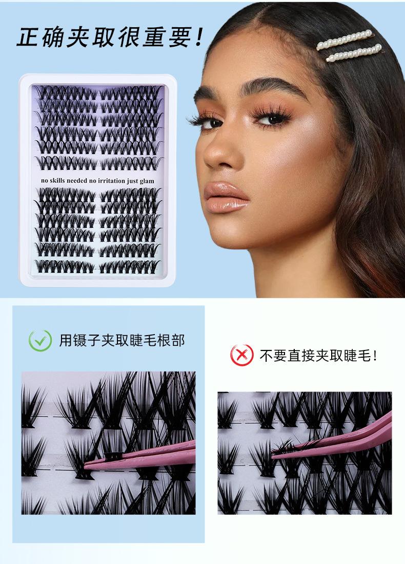30p_40p_50p_640 cluster eyelash book + double-ended glue + tweezers