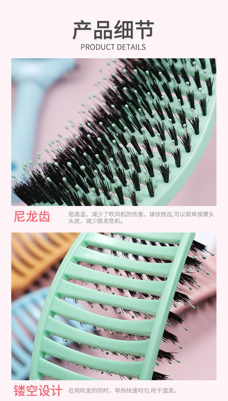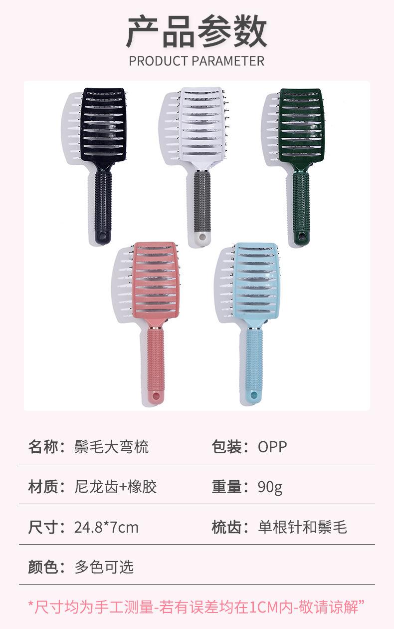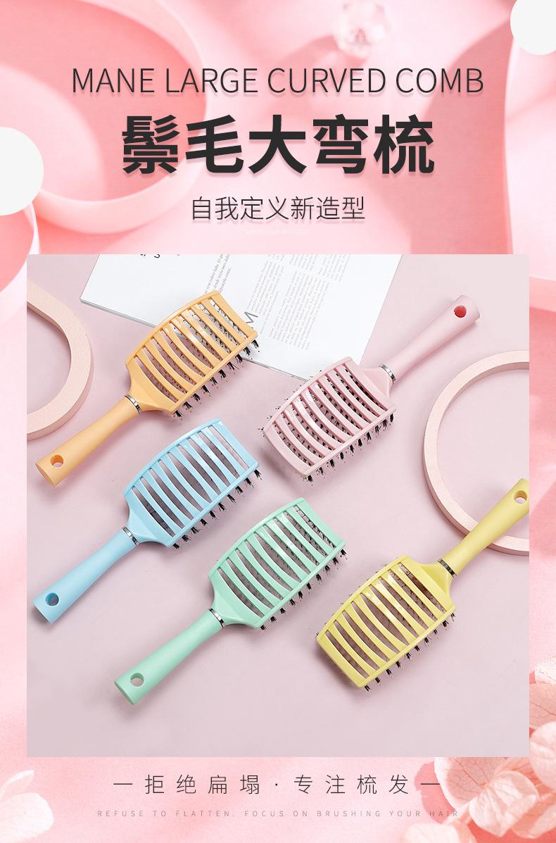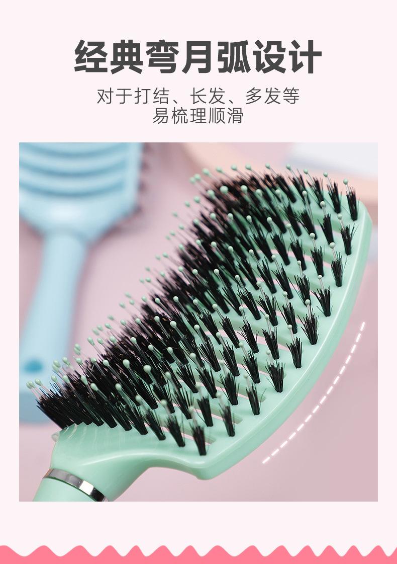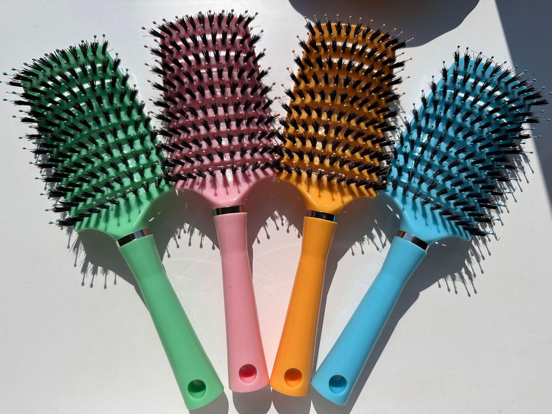Peine Grande Curvo Mullido Multicolor Yangzi para Peinar y Masajear Peine de Costillas para Hombres y Mujeres Peine Portátil de Cerdas de Jabalí para Peluquería