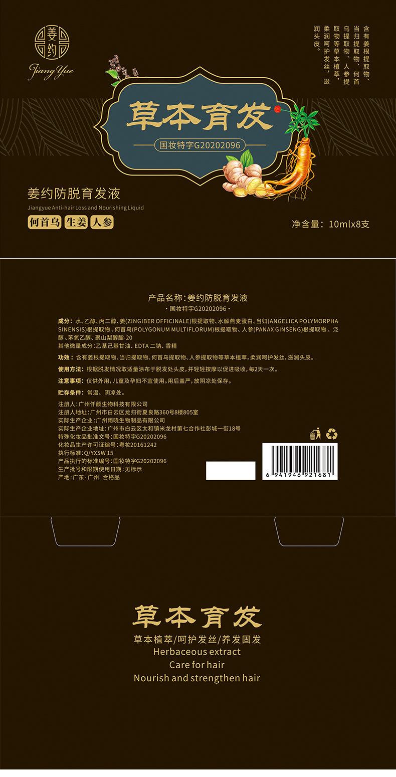 Jiang Yue Kit Líquido para el Crecimiento del Cabello Anticaída Jengibre Crecimiento del Cabello Polygonum Multiflorum Cabello Negro Caída del Cabello Postparto Agente para el Crecimiento del Cabello