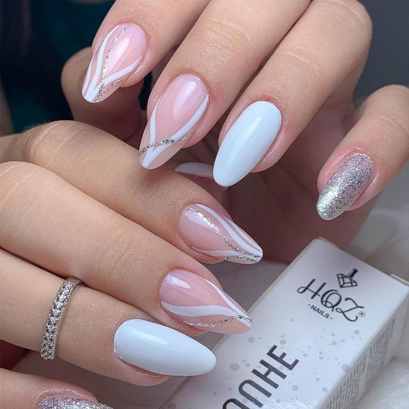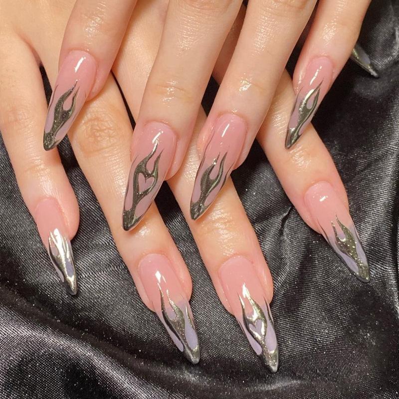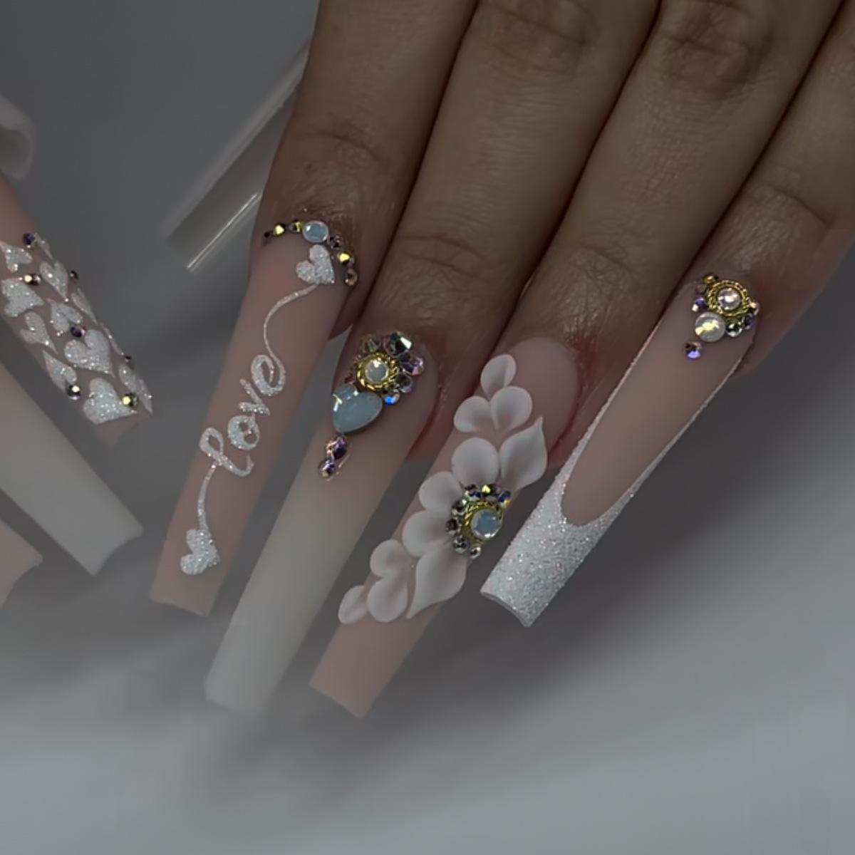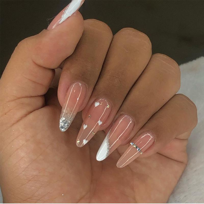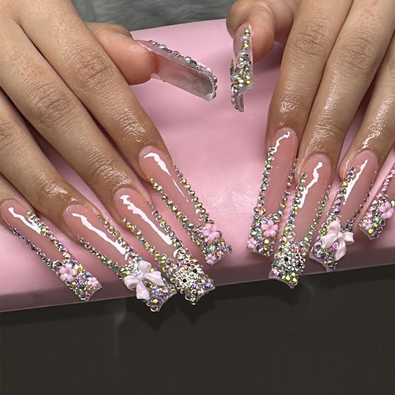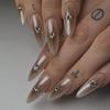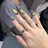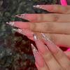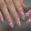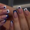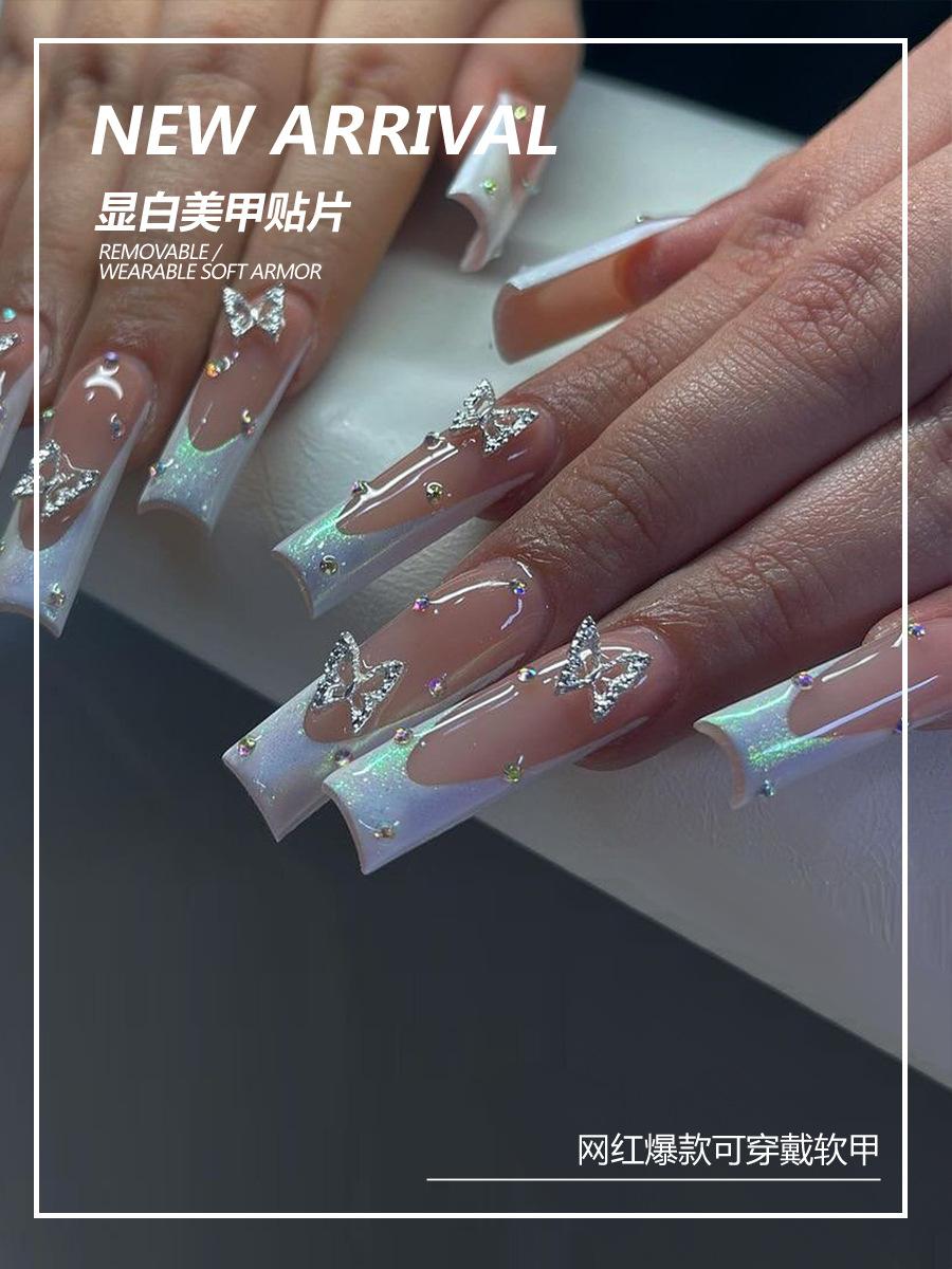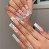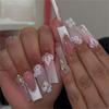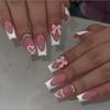 Europeo y americano usar esmalte de uñas pieza al por mayor largo francés hielo transparente mariposa rubor manicura producto terminado estilo dulce genial parche de uñas