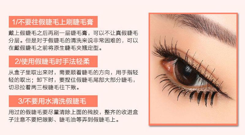 Aunque las pestañas postizas son delicadas y exquisitas, son muy frágiles, por lo que debes tener mucho cuidado al usarlas. Retíralas con cuidado con los dedos en la dirección de las pestañas. También puedes doblar la caja con las pestañas postizas hacia adelante y hacia atrás para que caigan naturalmente.