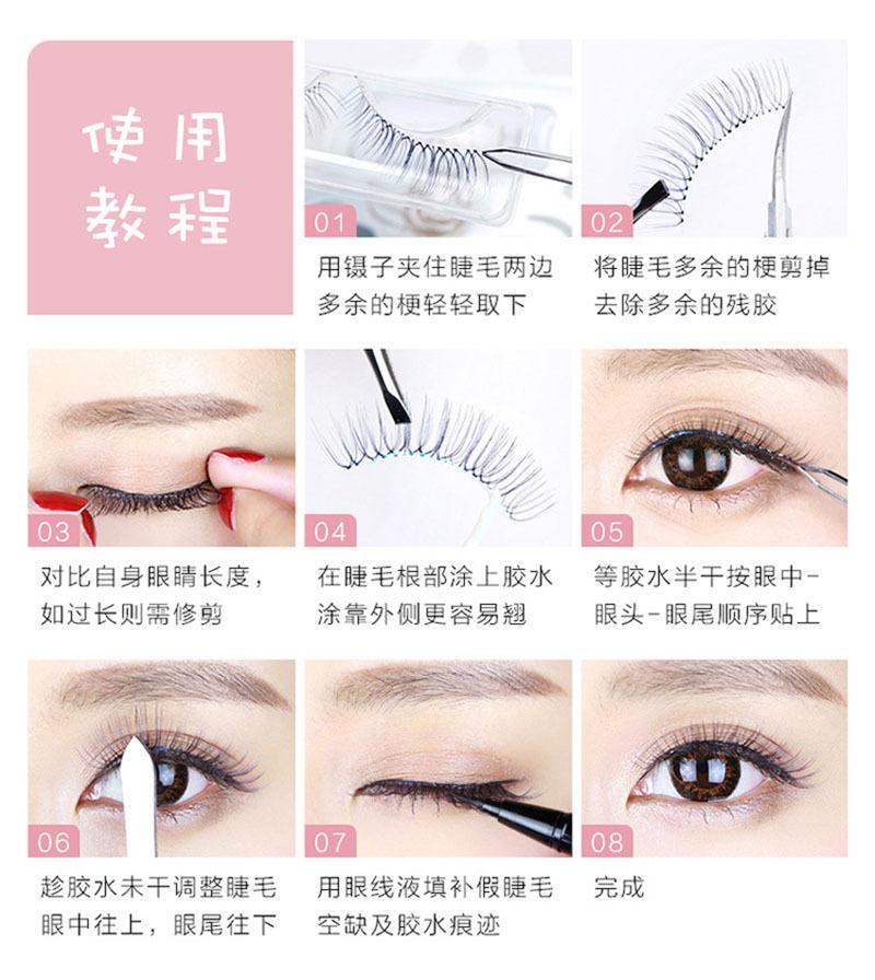 3. Las pestañas postizas en las esquinas exteriores de los ojos son fáciles de caer, así que use un palillo, tome un poco de pegamento y aplíquelo en las esquinas de los ojos, presione con cuidado las pestañas y las pestañas estarán más fijas después de que el pegamento se seque.