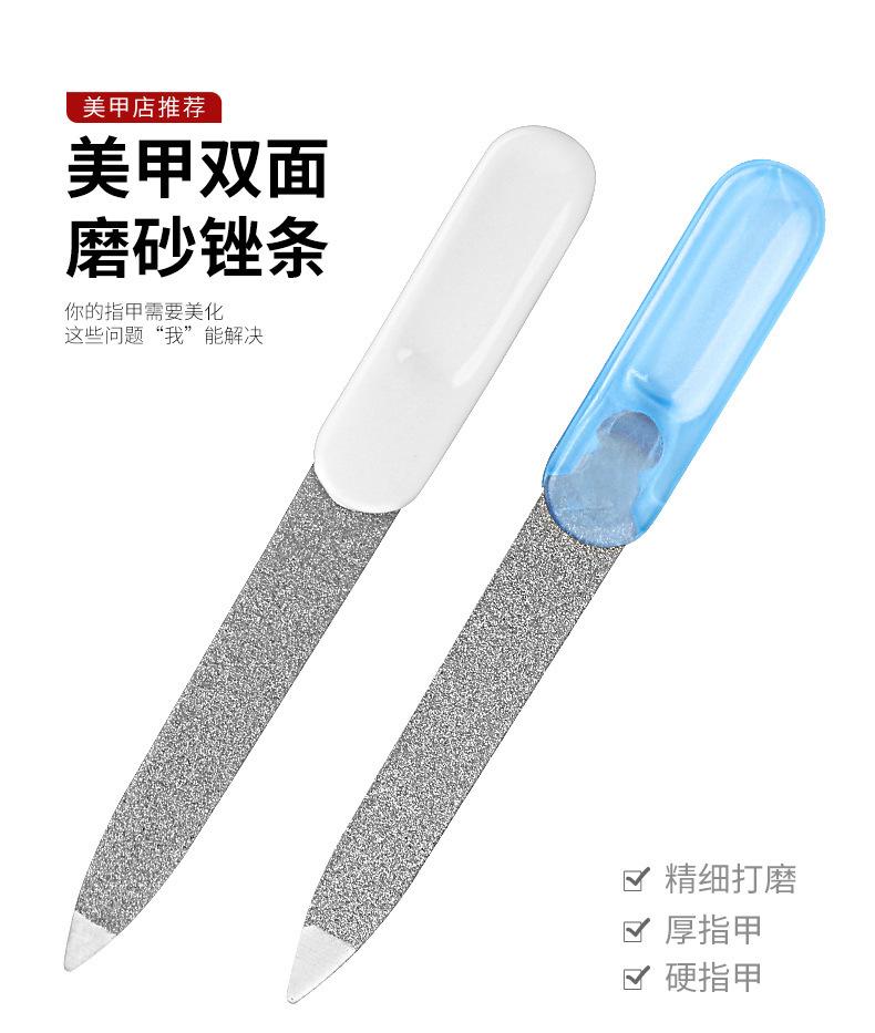 Lima de uñas de acero inoxidable de fábrica, lima de uñas portátil de doble cara, barra de pulido de uñas, tira de pulido de uñas, herramientas para uñas