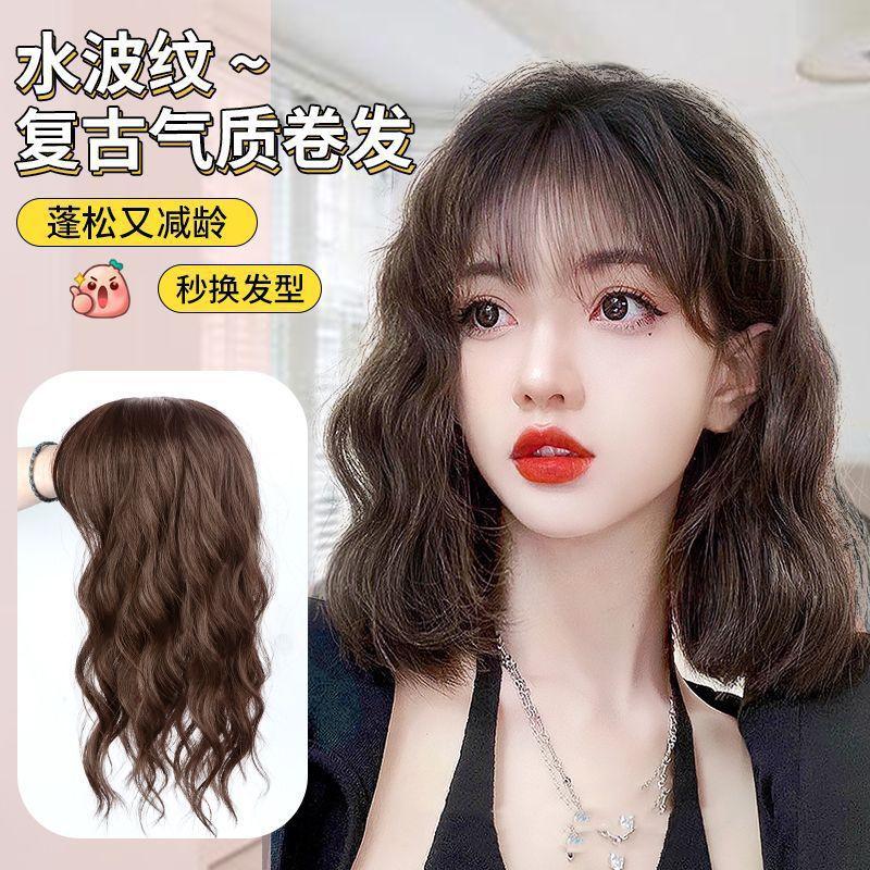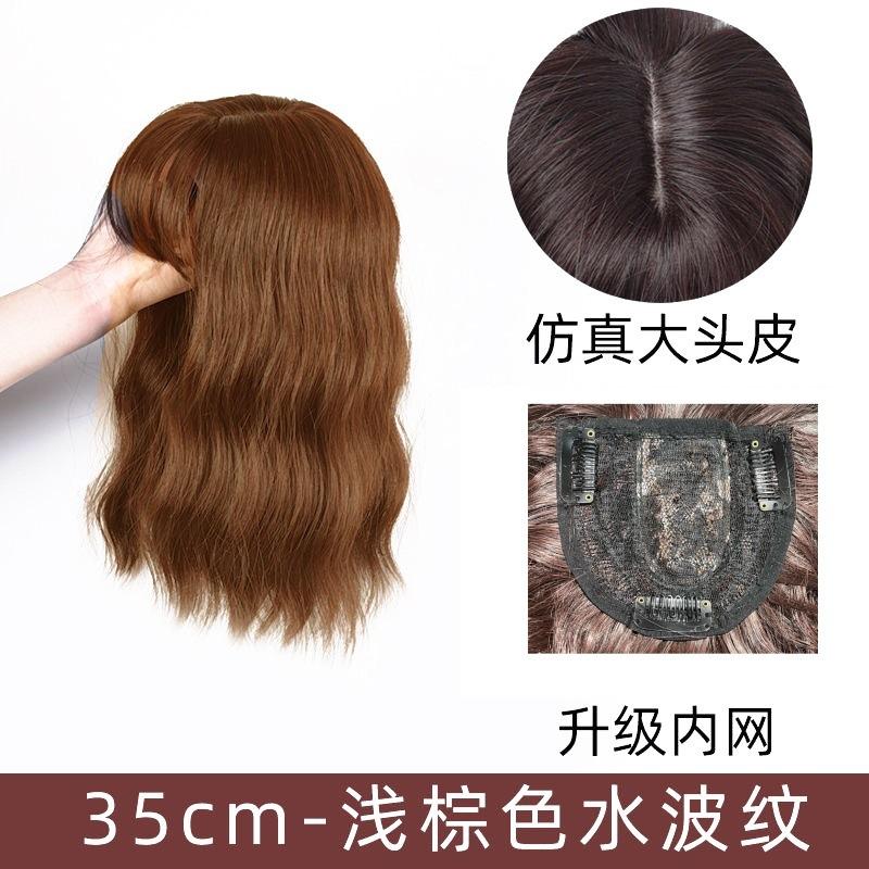 Peluca de cabeza femenina con cabello superior para aumentar el volumen, cubierta de cabello blanco esponjoso, pieza de reemplazo de cabello, pieza de peluca de cabello rizado con ondulación de agua