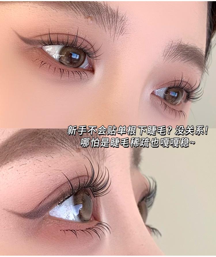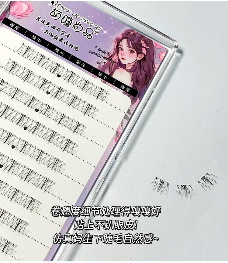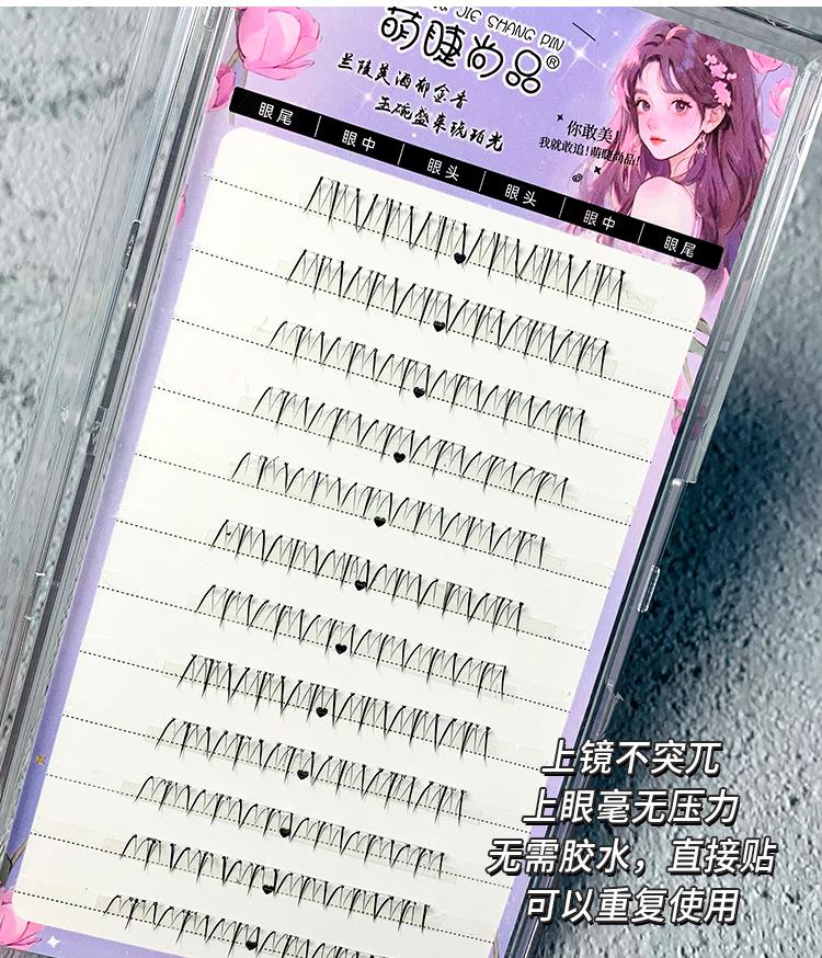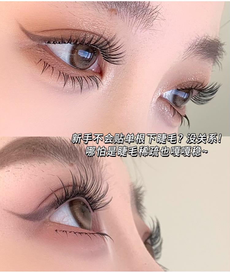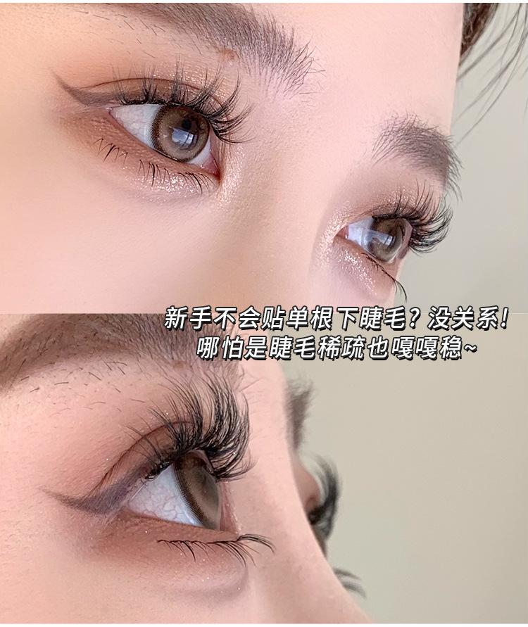 Pegamento para persona perezosa autoadhesivo sin pegamento cuatro hermosas mujeres debajo de las pestañas racimo único natural segmentado para principiantes fotogénico pestañas postizas gruesas
