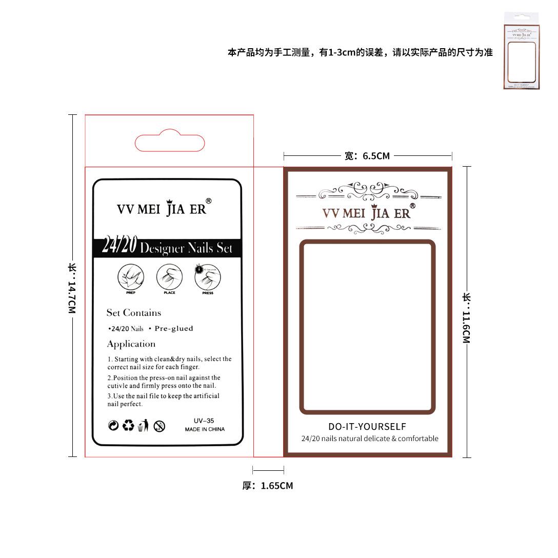 24 PCs Nail + jelly gel, 24 PCs nails + glue, Bare strip