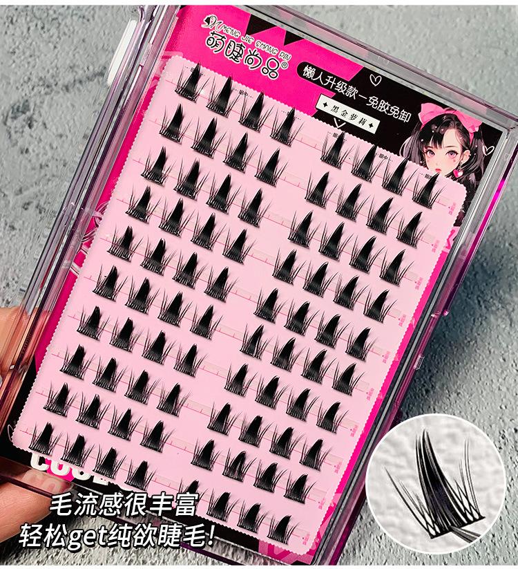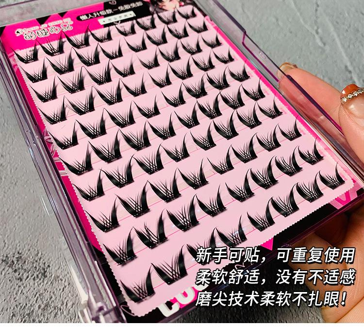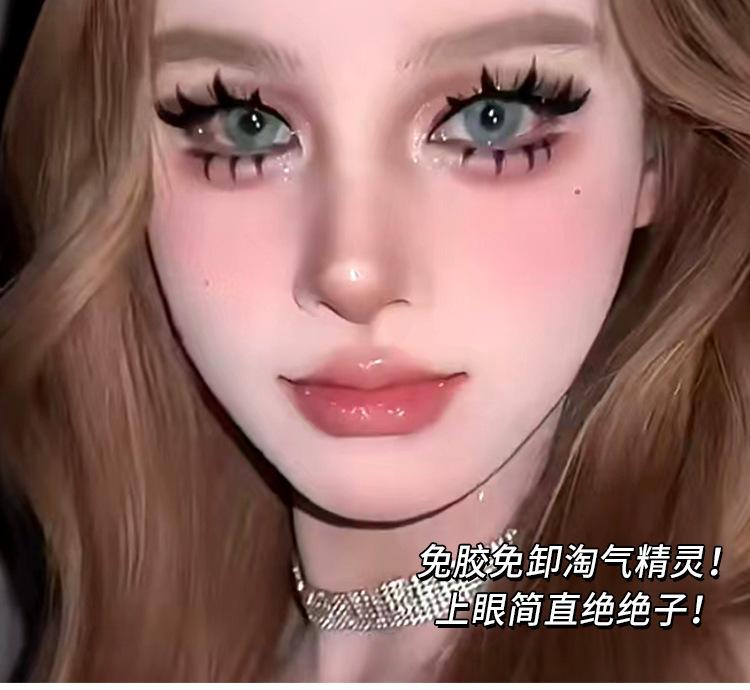 Pestañas postizas traviesas auto-adhesivas sin pegamento para persona perezosa, gruesas, individuales, segmentadas, para principiantes, fotogénicas