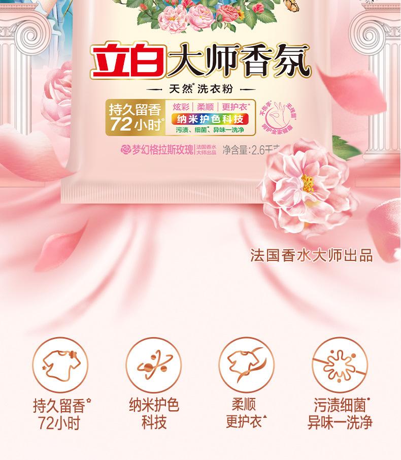Guangzhou oficial Libai maestro fragancia detergente en polvo quitamanchas protección contra manchas protección del color ropa de fragancia duradera 2.6kg * 2 bolsas