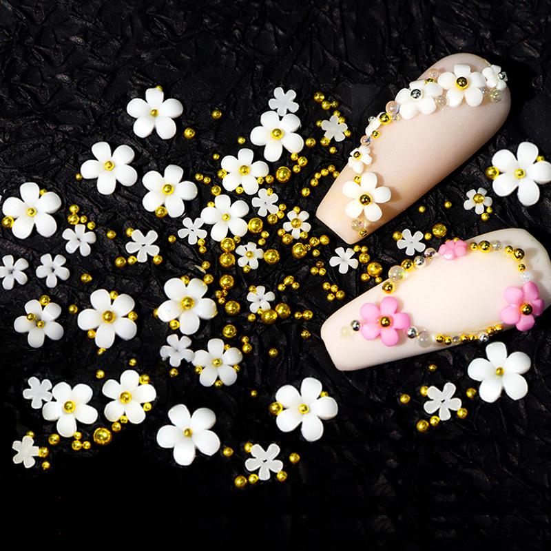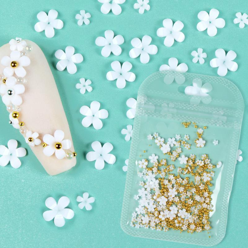 Cada paquete contiene aproximadamente 200 flores pequeñas (incluyendo alrededor de 50 flores de 6 mm y alrededor de 150 flores de 3 mm, sumando alrededor de 200 piezas. Muy rentable) + Cuentas Doradas/Plateadas (de vidrio), la versión plateada incluye algunas perlas pequeñas