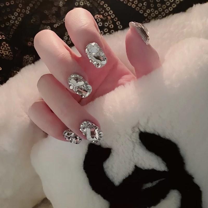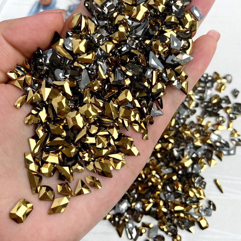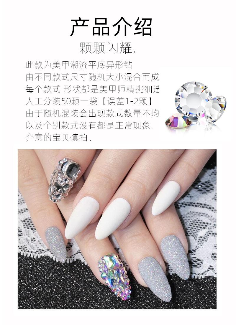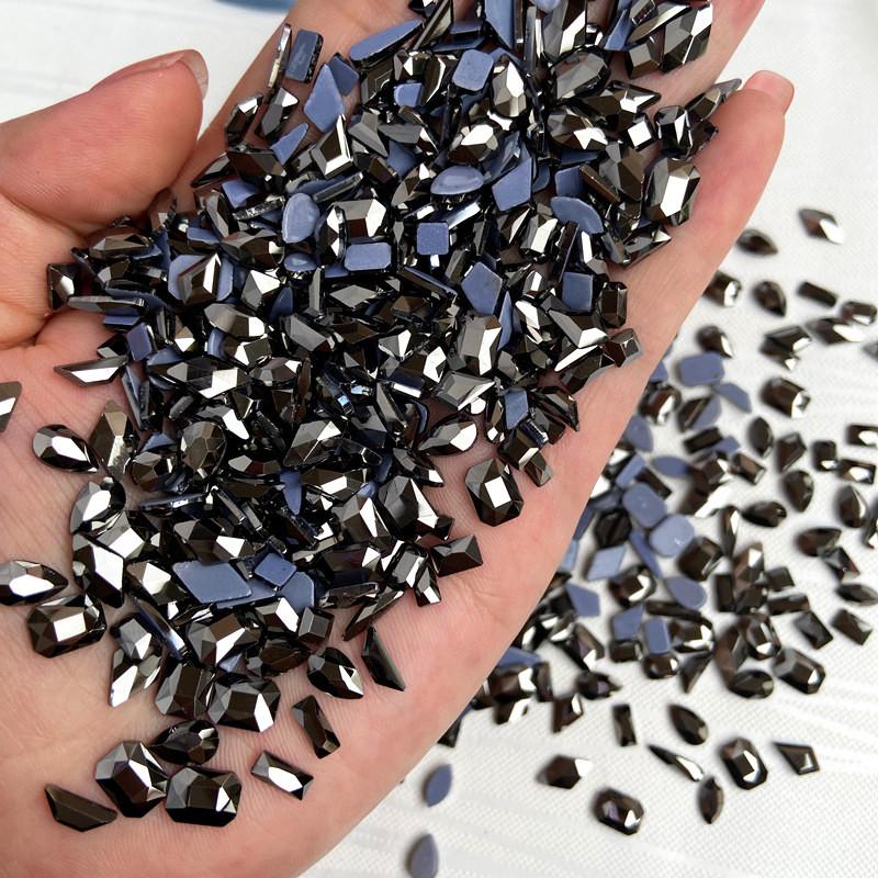 Joyería de diamantes para decoración de uñas, nuevo estilo, red roja, fondo plano, diamante de forma especial, mina mixta, diamante negro, súper destello, diamantes de imitación plateados, 50 piezas